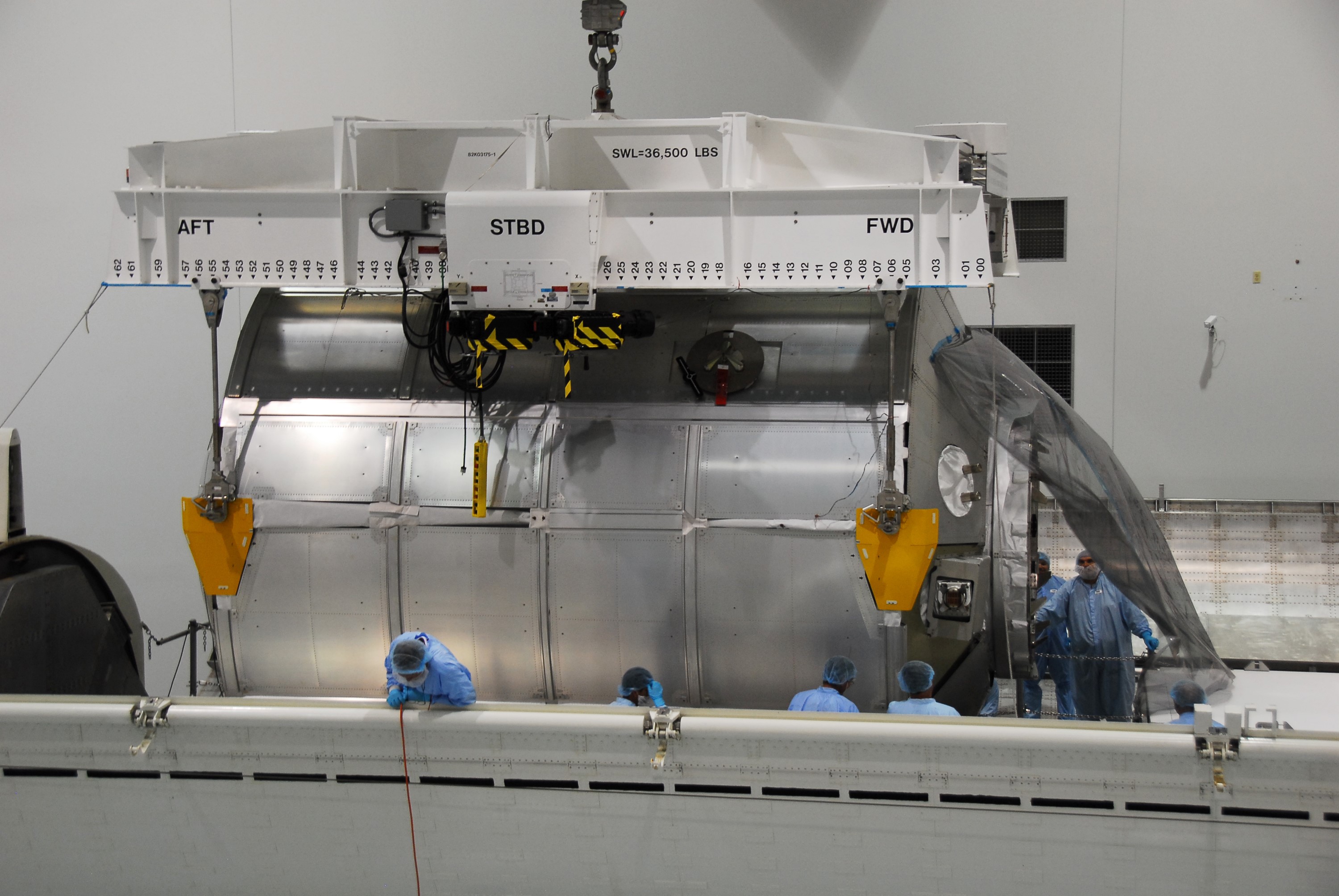 CAPE CANAVERAL, Fla. -- In the Space Station Processing Facility at NASA's Kennedy Space Center in Florida, technicians guide the Permanent Multipurpose Module, or PMM, as an overhead crane lowers it into the payload canister. The canister will then be transported to Launch Pad 39A and installed into space shuttle Discovery's payload bay. Discovery and its STS-133 crew will deliver the PMM, packed with supplies and critical spare parts, as well as Robonaut 2, the dexterous humanoid astronaut helper, to the International Space Station. Launch is targeted for 4:40 p.m. EDT, Nov. 1. Photo credit: NASA/Cory Huston