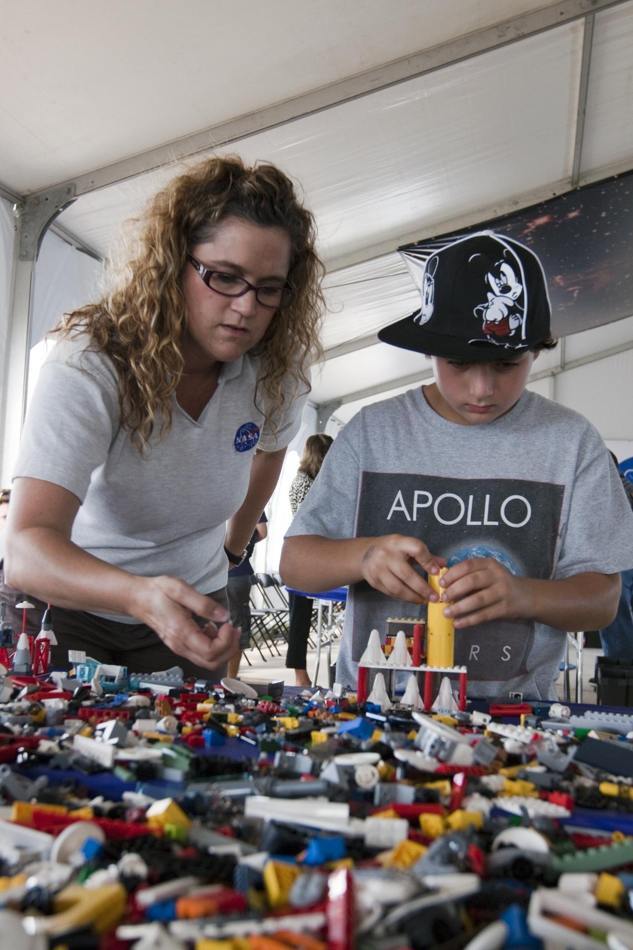 CAPE CANAVERAL, Fla. -- On the NASA Causeway at Kennedy Space Center in Florida, a 40- by 70-foot activity tent chock full of LEGO bricks hosts children and adults. There, they are building their vision of the future with LEGO bricks, marking the beginning of a three-year Space Act Agreement between NASA and The LEGO Group. The partnership is meant to spark the interest of children in science, technology, engineering and mathematics (STEM). To commemorate the partnership, two small LEGO space shuttles will launch aboard space shuttle Discovery's STS-133 mission to the International Space Station and the company will release four NASA-inspired products in its LEGO CITY line next year. LEGO sets also will fly to the space station aboard Endeavour's STS-134 mission, and will be put together on orbit to demonstrate the challenges faced while building things in microgravity. Photo credit: NASA/Jack Pfaller