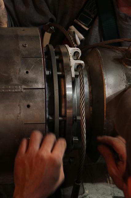 CAPE CANAVERAL, Fla. -- On Launch Pad 39A at NASA's Kennedy Space Center in Florida, technicians reattach the vent line to the ground umbilical carrier plate (GUCP) on space shuttle Discovery's external fuel tank. A hydrogen gas leak at that location during tanking for Discovery's STS-133 mission to the International Space Station caused the launch attempt to be scrubbed Nov. 5. The GUCP is the overboard vent to the pad and the flame stack where the excess hydrogen is burned off. Discovery's next launch attempt is no earlier than Nov. 30 at 4:02 a.m. EST. For more information on STS-133, visit www.nasa.gov/mission_pages/shuttle/shuttlemissions/sts133/. Photo credit: NASA/Ben Smegelsky