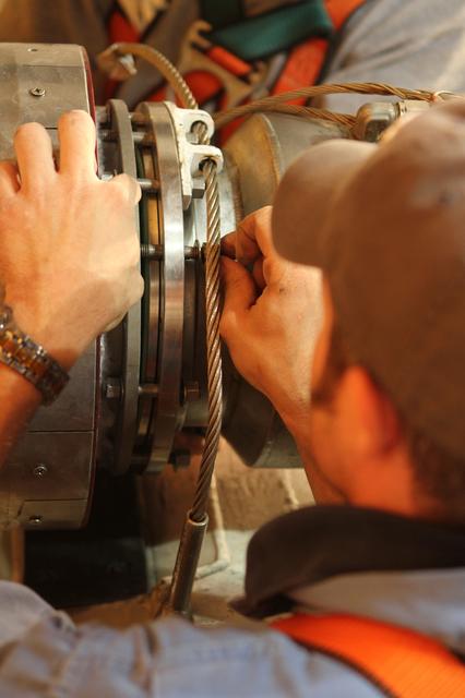 CAPE CANAVERAL, Fla. -- On Launch Pad 39A at NASA's Kennedy Space Center in Florida, technicians reattach the vent line to the ground umbilical carrier plate (GUCP) on space shuttle Discovery's external fuel tank. A hydrogen gas leak at that location during tanking for Discovery's STS-133 mission to the International Space Station caused the launch attempt to be scrubbed Nov. 5. The GUCP is the overboard vent to the pad and the flame stack where the excess hydrogen is burned off. Discovery's next launch attempt is no earlier than Nov. 30 at 4:02 a.m. EST. For more information on STS-133, visit www.nasa.gov/mission_pages/shuttle/shuttlemissions/sts133/. Photo credit: NASA/Ben Smegelsky
