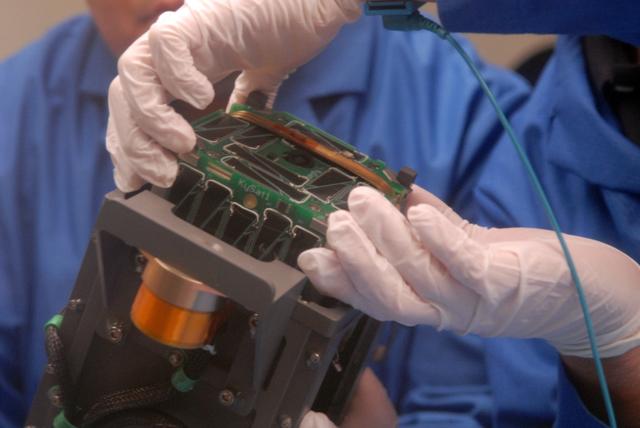 San Luis Obispo, Calif. -- 101116-F-8290C-059 -- Roland Coelho and Ryan Nugent, students at California Polytechnic State University Cal Poly, integrate miniature research satellites called CubeSats into a Poly Picosatellite Orbital Deployer PPOD container. The PPOD and CubeSat Project were developed by Cal Poly and Stanford University’s Space Systems Development Lab for use on NASA’s Educational Launch of Nanosatellite ELaNa missions. Each CubeSat measures about 4-inches cubed and is about the same volume as a quart. The CubeSats weigh about 2.2 pounds, must conform to standard aerospace materials and must operate without propulsion. The satellites are being prepared to launch with NASA's Glory spacecraft aboard an Orbital Sciences Corp. Taurus XL rocket, targeted to lift off Feb. 23, 2011, from Vandenberg's Space Launch Complex 576-E. Glory is scheduled to collect data on the properties of aerosols and black carbon from its place in low Earth orbit. It also will help scientists understand how the sun's irradiance affects Earth's climate. Photo credit: U.S. Air Force/Jerry E. Clemens Jr.