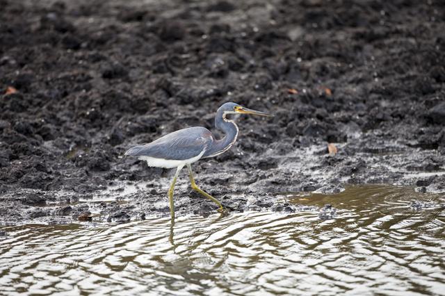 CAPE CANAVERAL, Fla. -- An Egretta Heron, also known as a Tricolored Heron, wades through water just north of the Shuttle Landing Facility at NASA's Kennedy Space Center in Florida. Kennedy coexists with the Merritt Island National Wildlife Refuge, habitat to more than 310 species of birds, 25 mammals, 117 fish and 65 amphibians and reptiles. Photo credit: NASA/Frankie Martin