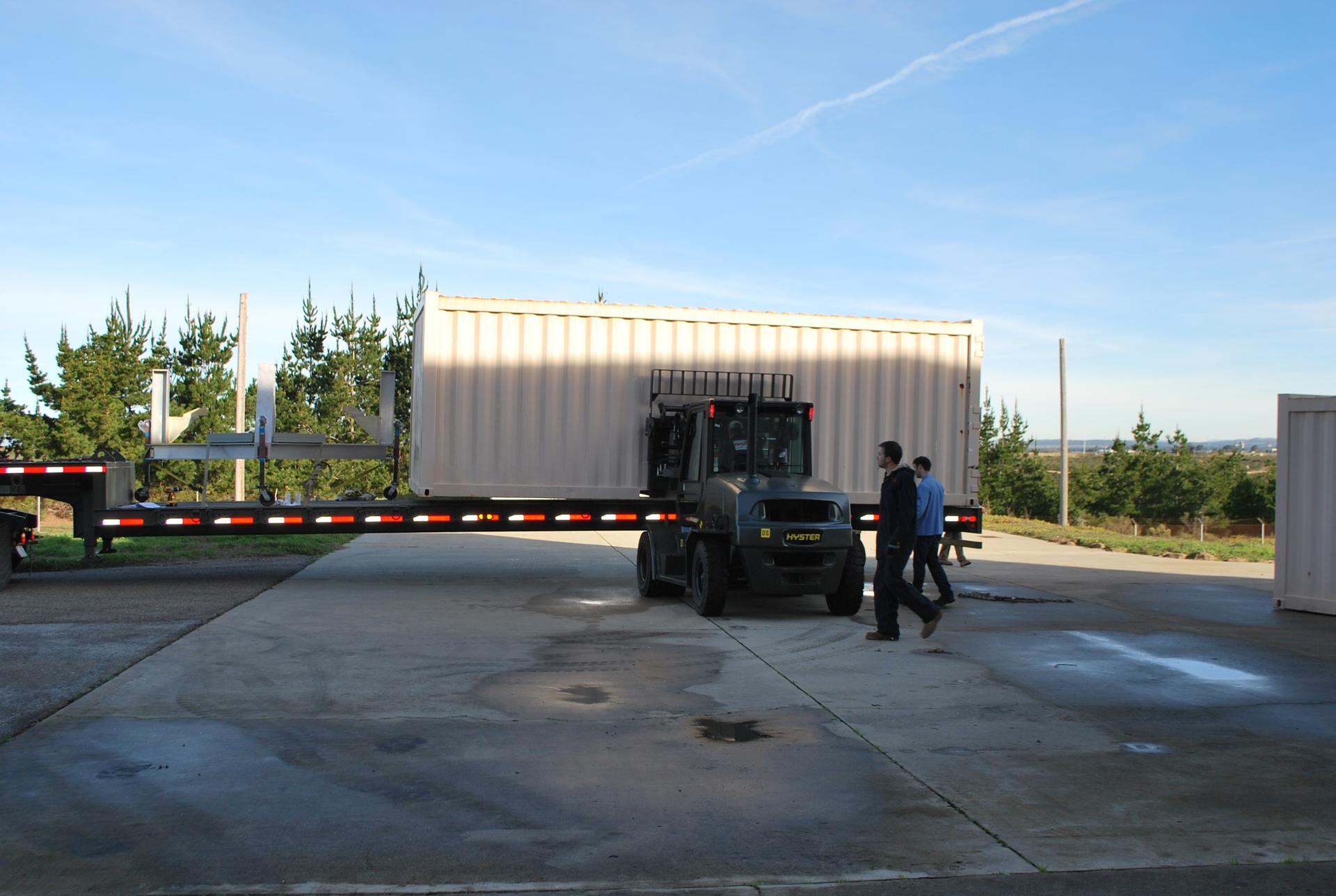 VANDENBERG AIR FORCE BASE, Calif. -- At the Orbital Sciences Corp. Building 1555 at Vandenberg Air Force Base in California, a crane lifts the cargo container housing one half of the fairing onto a trailer for transport to the Astrotech Payload Processing Facility. Once both halves of the fairing are delivered to Astrotech they will be installed around NASA's Glory satellite to protect it from the weather at the launch pad as well as from the atmosphere during flight. A four-stage Taurus XL rocket will carry Glory into low Earth orbit. Once Glory reaches orbit, it will collect data on the properties of aerosols and black carbon. It also will help scientists understand how the sun's irradiance affects Earth's climate. Launch is scheduled for 2:09 a.m. PST Feb. 23 from Vandenberg's Space Launch Complex 576-E. For information, visit www.nasa.gov/glory. Photo credit: NASA/Randy Beaudoin, VAFB