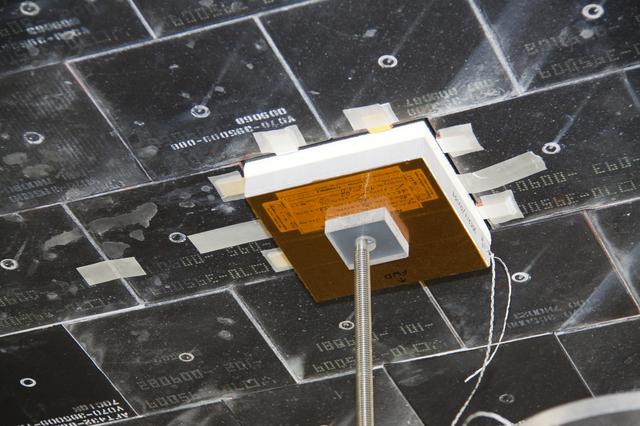 CAPE CANAVERAL, Fla. -- In Orbiter Processing Facility-1 at NASA's Kennedy Space Center in Florida, a thermal protection system technician has secured a newly installed heat shield tile in place under space shuttle Atlantis with a pressure fitting to ensure a tight bond. The tiles are part of the Orbiter Thermal Protection System, thermal shields to protect against temperatures as high as 3,000 degrees Fahrenheit, which are produced during descent for landing. Atlantis is being prepared for the STS-135 mission, which will deliver the Raffaello multi-purpose logistics module packed with supplies, logistics and spare parts to the International Space Station. STS-135 is targeted to launch June 28, and will be the last spaceflight for the Space Shuttle Program. Photo credit: NASA/Jack Pfaller
