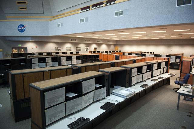 CAPE CANAVERAL, Fla. -- At NASA's Kennedy Space Center in Florida, remodeling for launches of future human spaceflight vehicles continues in the Launch Control Center's Young-Crippen Firing Room. Consoles already have been rewired for the comprehensive upgrade and are now being outfitted with new computers and monitors. Known as Firing Room 1 in the Apollo era, it was re-named as a tribute to the Space Shuttle Program's first crewed mission, STS-1, which was flown by Commander John Young and Pilot Robert Crippen in April 1981. The firing room most recently was set up to support the Ares I-X flight test in Oct. 2009. Photo credit: NASA/Kim Shiflett