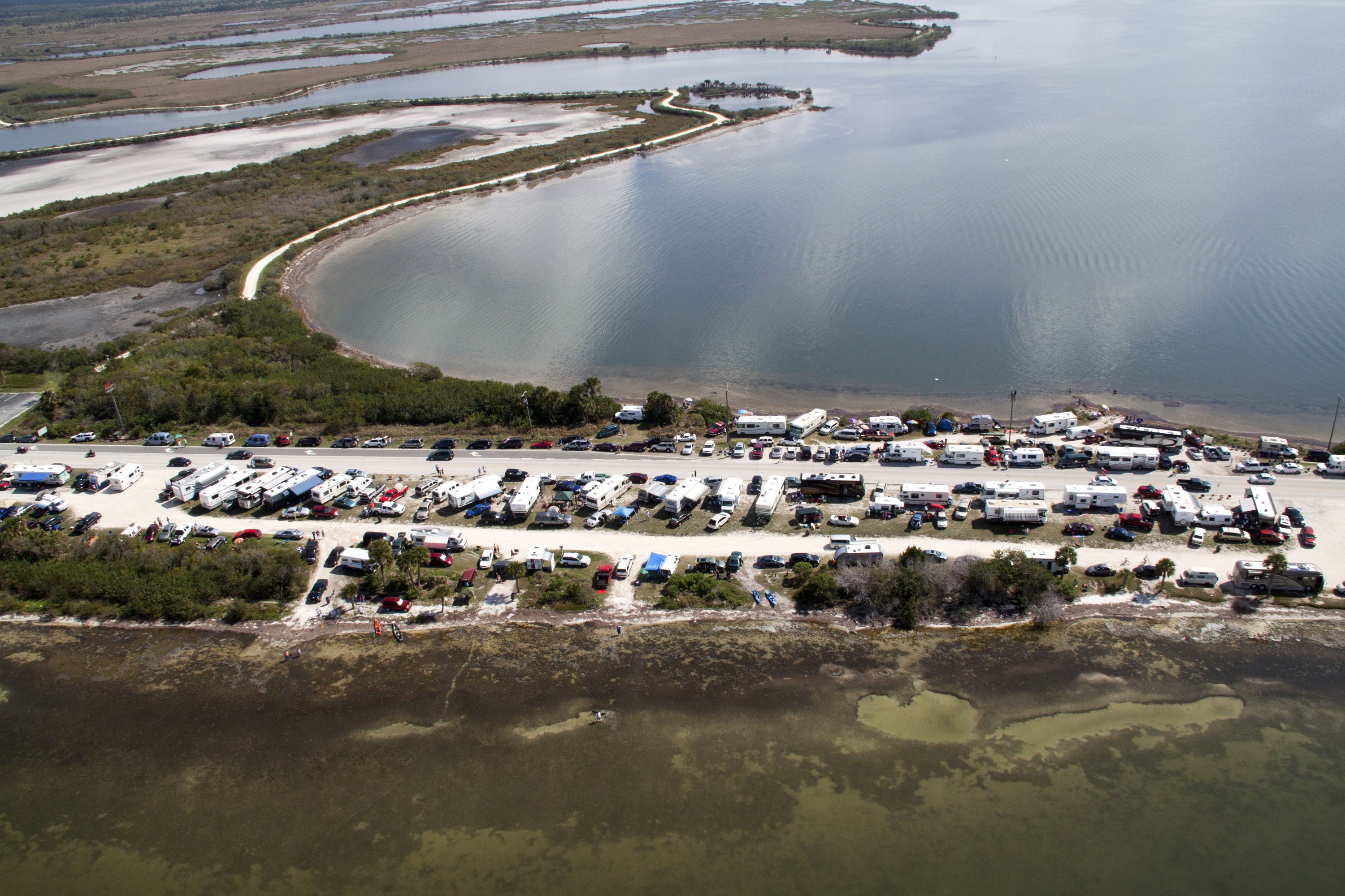 CAPE CANAVERAL, Fla. -- Folks from across the country camped out in communities surrounding NASA's Kennedy Space Center in Florida to witness space shuttle Discovery make history by lifting off on its final scheduled mission from Launch Pad 39A. Seen here, is State Road 406, also known as the A. Max Brewer Causeway, in Titusville, Fla. Liftoff is set for 4:50 p.m. EST on Feb. 24. Discovery and its six-member STS-133 crew will deliver the Permanent Multipurpose Module, packed with supplies and critical spare parts, as well as Robonaut 2, the dexterous humanoid astronaut helper, to the International Space Station. Discovery, which will fly its 39th mission, is scheduled to be retired following STS-133. This will be the 133rd Space Shuttle Program mission and the 35th shuttle voyage to the space station. For more information on the STS-133 mission, visit www.nasa.gov/mission_pages/shuttle/shuttlemissions/sts133/. Photo credit: NASA/Jack Pfaller