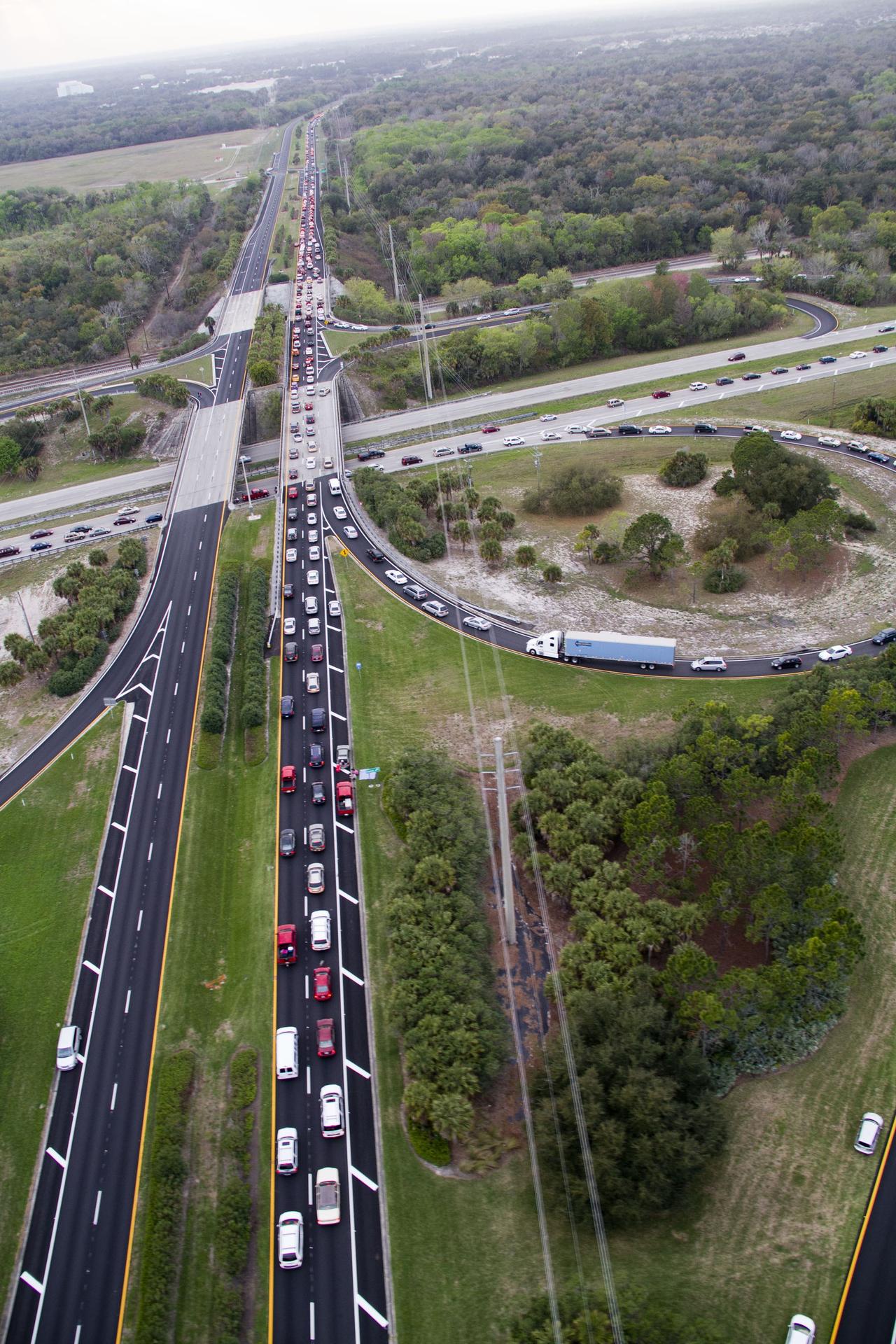 CAPE CANAVERAL, Fla. -- This image of U. S. Highway 1 and surrounding roadways in Titusville, Florida, was taken from a traffic survey helicopter after the successful launch of space shuttle Discovery at 4:53 p.m. EST on its final flight to the International Space Station. Discovery's six-member crew will deliver the Permanent Multipurpose Module, packed with supplies and critical spare parts, as well as Robonaut 2, the dexterous humanoid astronaut helper, to the orbiting outpost. Discovery is flying on its 39th and final mission and is scheduled to be retired following STS-133. This is the 133rd Space Shuttle Program mission and the 35th shuttle voyage to the space station. For more information on the STS-133 mission, visit www.nasa.gov/mission_pages/shuttle/shuttlemissions/sts133/. Photo credit: NASA/Jack Pfaller