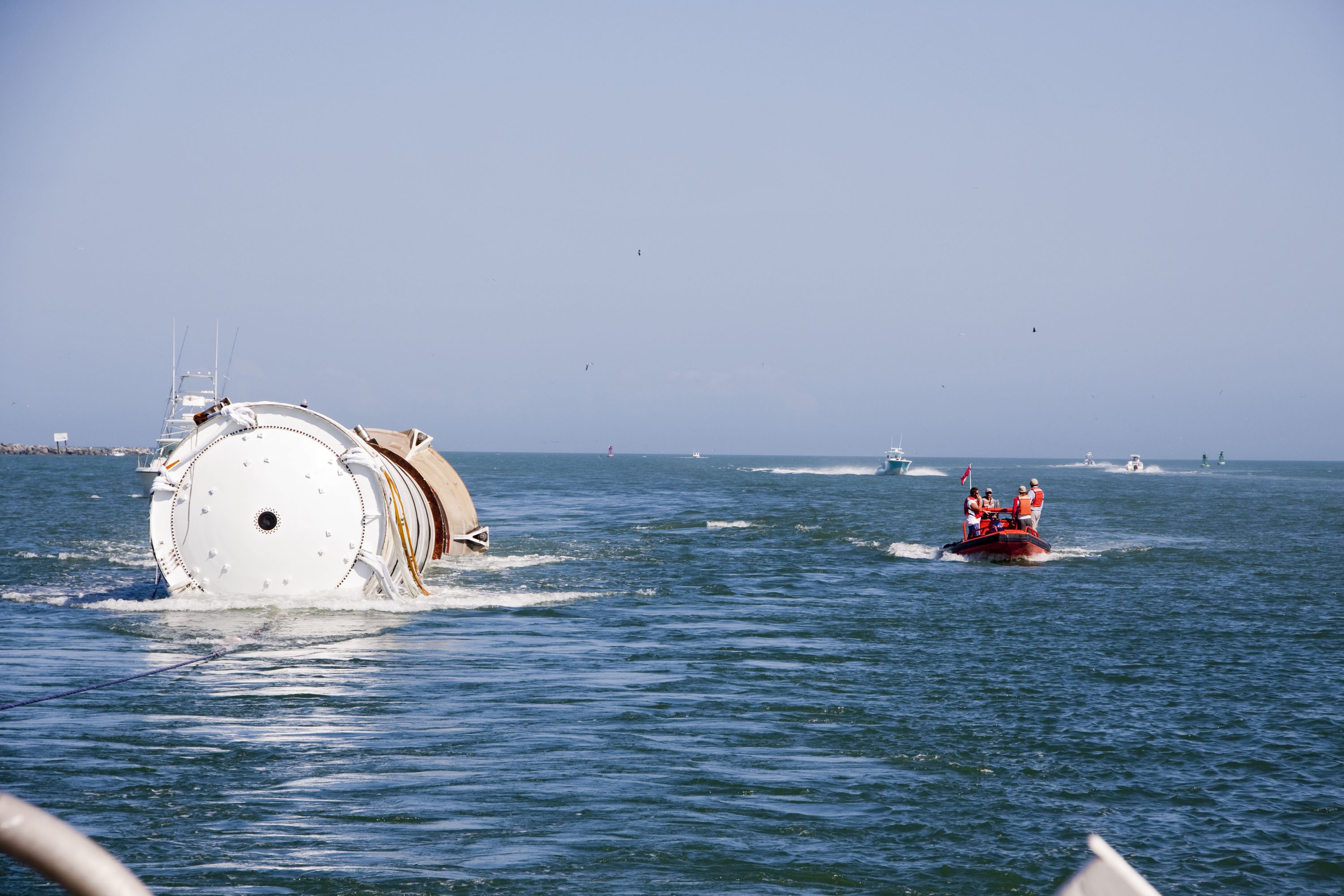 CAPE CANAVERAL, Fla. -- Liberty Star, one of NASA's solid rocket booster retrieval ships, tows the right spent booster from space shuttle Discovery's final launch, to Port Canaveral in Florida. The shuttle's two solid rocket booster casings and associated flight hardware are recovered in the Atlantic Ocean after every launch by Freedom Star and Liberty Star. The boosters impact the Atlantic about seven minutes after liftoff and the retrieval ships are stationed about 10 miles from the impact area at the time of splashdown. After the spent segments are processed, they will be transported to Utah, where they will be refurbished and stored, if needed. Photo credit: NASA/Frank Michaux