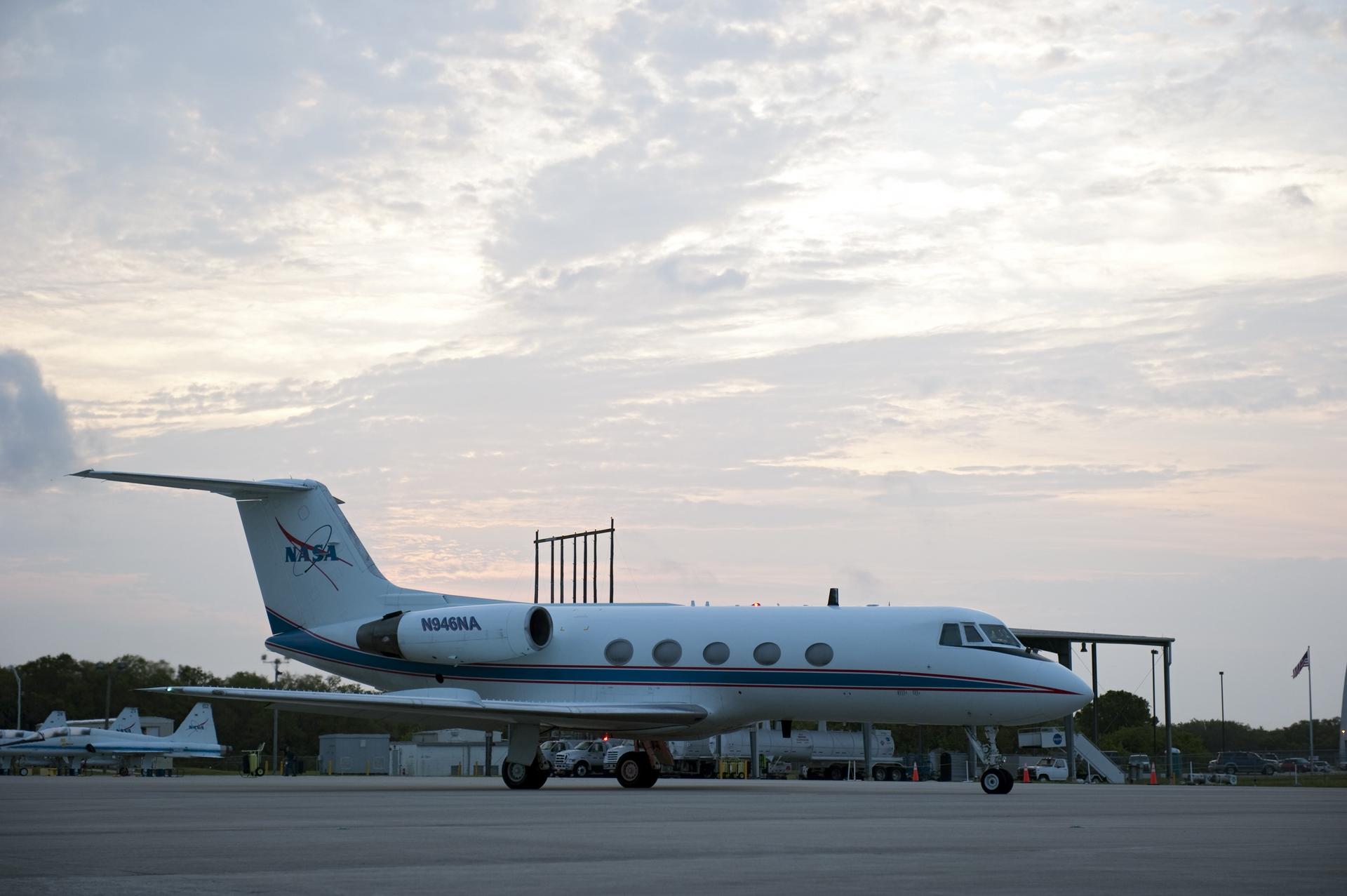 CAPE CANAVERAL, Fla. -- STS-134 Commander Mark Kelly prepares to take flight in a Shuttle Training Aircraft (STA) to perform touch-and-go landings on the Shuttle Landing Facility at NASA's Kennedy Space Center in Florida. STAs are Gulfstream II business jets that are modified to mimic the shuttle's handling during the final phase of landing. Practice landings are part of standard training before space shuttle Endeavour's STS-134 launch to the International Space Station. Endeavour's six crew members are at Kennedy for the launch countdown dress rehearsal called the Terminal Countdown Demonstration Test (TCDT) and related training. Targeted to launch April 19 at 7:48 p.m. EDT, they will deliver the Express Logistics Carrier-3, Alpha Magnetic Spectrometer-2 (AMS), a high-pressure gas tank, additional spare parts for the Dextre robotic helper and micrometeoroid debris shields to the space station. This will be the final spaceflight for Endeavour. For more information visit, www.nasa.gov/mission_pages/shuttle/shuttlemissions/sts134/index.html. Photo credit: NASA/Kim Shiflett