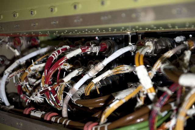 CAPE CANAVERAL, Fla. -- At NASA Kennedy Space Center's Launch Pad 39A, a worker inside space shuttle Endeavour's aft section removed a cover to provide access for the removal and replacement of the Load Control Assembly-2 (LCA-2). Located in the orbiter's aft avionics bay 5, the LCA-2 assembly, which feeds power to the fuel line heaters, is believed to have caused the heaters for Endeavour's auxiliary power unit-1 (APU-1) to fail April 29 during the first launch attempt for the STS-134 mission. STS-134 will deliver the Express Logistics Carrier-3, Alpha Magnetic Spectrometer-2 (AMS), a high-pressure gas tank and additional spare parts for the Dextre robotic helper to the International Space Station. The mission also will be the final spaceflight for Endeavour. For more information, visit www.nasa.gov/mission_pages/shuttle/shuttlemissions/sts134/index.html. Photo credit: NASA/Kim Shiflett.
