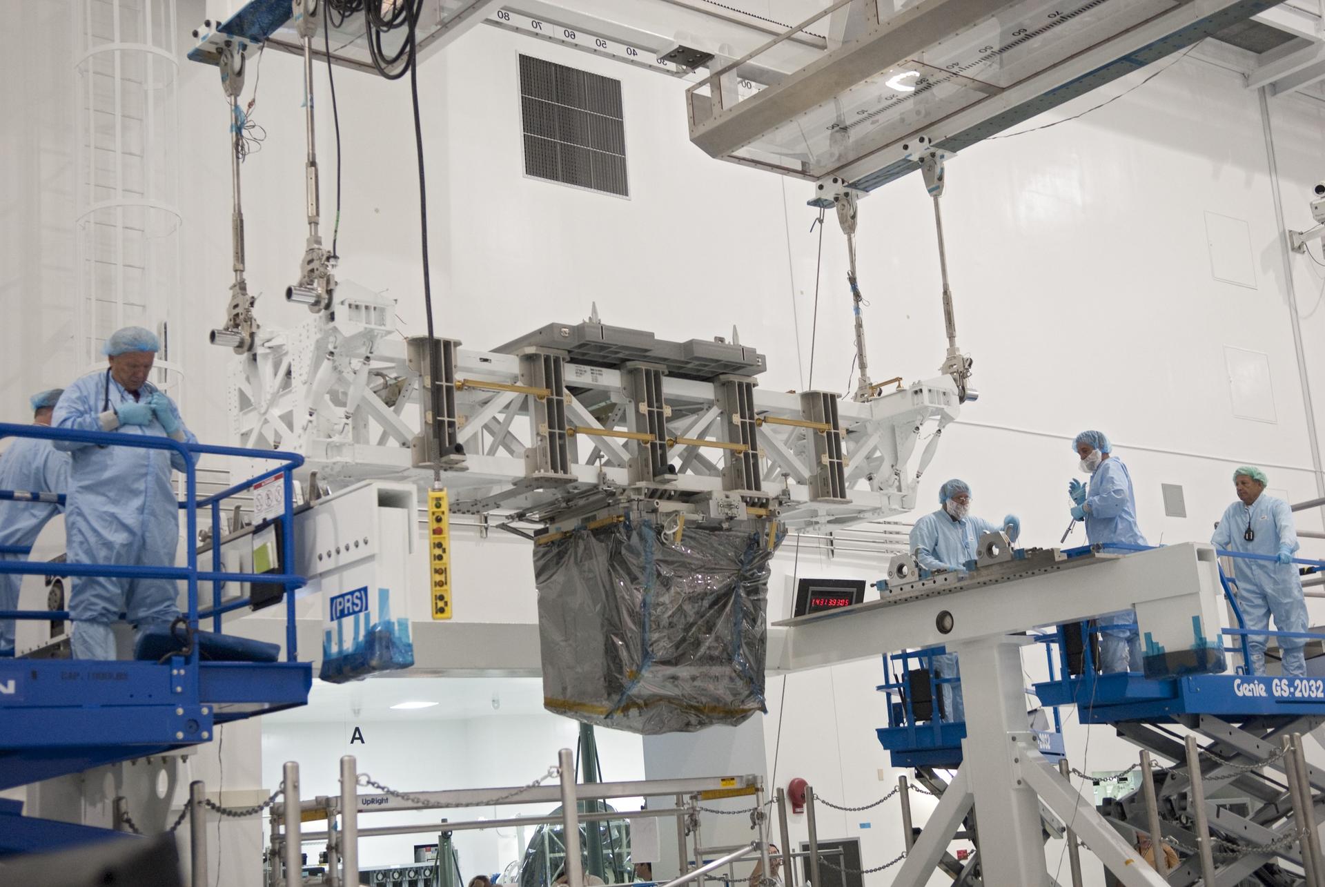 CAPE CANAVERAL, Fla. - In the Space Station Processing Facility at NASA's Kennedy Space Center in Florida technicians use an overhead crane to move the Lightweight Multi-Purpose Experiment Support Structure Carrier, or LMC, to a payload canister. The canister then will be installed into Atlantis' payload bay. Commander Chris Ferguson, Pilot Doug Hurley and Mission Specialists Sandra Magnus and Rex Walheim are targeted to lift off on July 8, taking with them the Raffaello multi-purpose logistics module packed with supplies, logistics and spare parts. The STS-135 mission also will fly a system to investigate the potential for robotically refueling existing spacecraft and return a failed ammonia pump module to help NASA better understand the failure mechanism and improve pump designs for future systems. STS-135 will be the 33rd flight of Atlantis, the 37th shuttle mission to the space station, and the 135th and final mission of NASA's Space Shuttle Program. For more information visit, www.nasa.gov/mission_pages/shuttle/shuttlemissions/sts135/index.html. Photo credit: NASA/Jim Grossmann