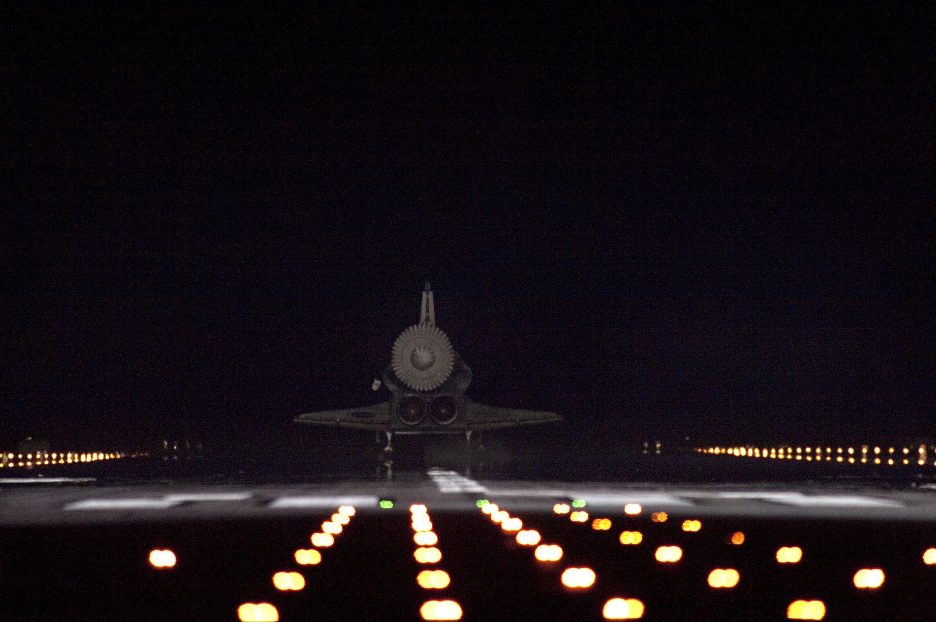 CAPE CANAVERAL, Fla. -- Xenon lights help lead space shuttle Endeavour home to NASA's Kennedy Space Center in Florida. Endeavour landed for the final time on the Shuttle Landing Facility's Runway 15, marking the 25th night landing of NASA's Space Shuttle Program. Main gear touchdown was at 2:34:51 a.m. EDT, followed by nose gear touchdown at 2:35:04 a.m., and wheelstop at 2:35:36 a.m. On board are STS-134 Commander Mark Kelly, Pilot Greg H. Johnson, and Mission Specialists Mike Fincke, Drew Feustel, Greg Chamitoff and the European Space Agency's Roberto Vittori. STS-134 delivered the Alpha Magnetic Spectrometer-2 (AMS) and the Express Logistics Carrier-3 (ELC-3) to the International Space Station. AMS will help researchers understand the origin of the universe and search for evidence of dark matter, strange matter and antimatter from the station. ELC-3 carried spare parts that will sustain station operations once the shuttles are retired from service. STS-134 was the 25th and final flight for Endeavour, which has spent 299 days in space, orbited Earth 4,671 times and traveled 122,883,151 miles. Photo credit: NASA/Sandra Joseph and Kevin O'Connell