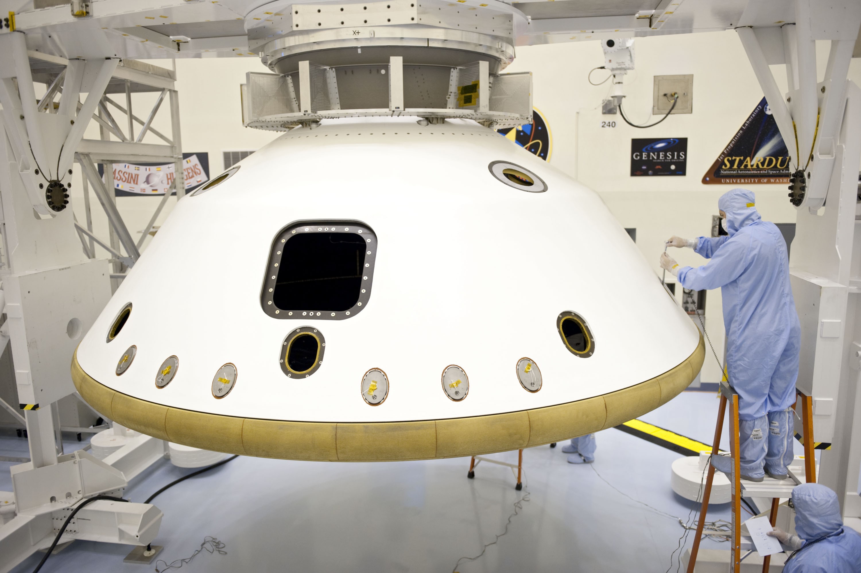Cape Canaveral, Fla. -- At the Payload Hazardous Servicing Facility at NASA's Kennedy Space Center in Florida, technicians prepare to separate the two components of the aeroshell, an element of NASA's Mars Science Laboratory (MSL), after testing. The aeroshell consists of the spacecraft's heat shield and the backshell which carries the parachute and several components used during later stages of entry, descent and landing. MSL's components include a compact car-sized rover, Curiosity, which has 10 science instruments designed to search for evidence on whether Mars has had environments favorable to microbial life, including chemical ingredients for life. The unique rover will use a laser to look inside rocks and release its gasses so that the rover’s spectrometer can analyze and send the data back to Earth. Launch of MSL aboard a United Launch Alliance Atlas V rocket is scheduled for Nov. 25 from Space Launch Complex 41 on Cape Canaveral Air Force Station in Florida. For more information, visit http://www.nasa.gov/msl. Photo credit: NASA/Kim Shiflett