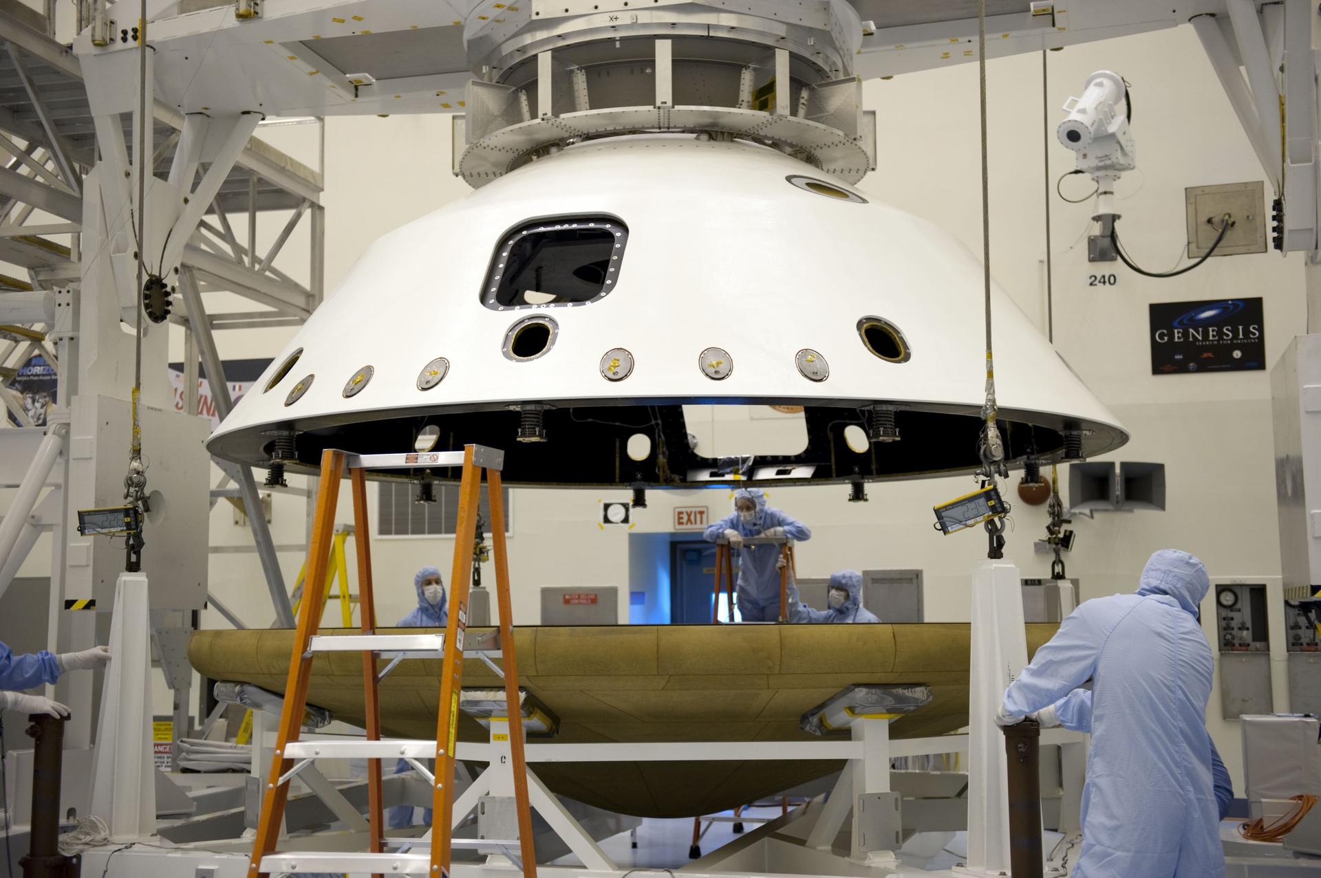 Cape Canaveral, Fla. -- At the Payload Hazardous Servicing Facility at NASA's Kennedy Space Center in Florida, technicians, using an overhead crane, separate the two components of the aeroshell, an element of NASA's Mars Science Laboratory (MSL), after testing. The aeroshell consists of the spacecraft's heat shield and the backshell which carries the parachute and several components used during later stages of entry, descent and landing. MSL's components include a compact car-sized rover, Curiosity, which has 10 science instruments designed to search for evidence on whether Mars has had environments favorable to microbial life, including chemical ingredients for life. The unique rover will use a laser to look inside rocks and release its gasses so that the rover’s spectrometer can analyze and send the data back to Earth. Launch of MSL aboard a United Launch Alliance Atlas V rocket is scheduled for Nov. 25 from Space Launch Complex 41 on Cape Canaveral Air Force Station in Florida. For more information, visit http://www.nasa.gov/msl. Photo credit: NASA/Kim Shiflett