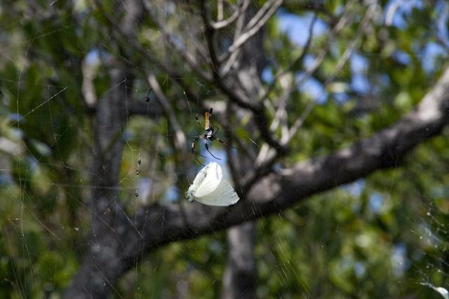 CAPE CANAVERAL, Fla. -- Near Launch Pad 39A at Kennedy Space Center in Florida, a Golden-Silk Spider repairs its web after a capturing a moth. The golden-silk spider repairs the webbing each day, replacing half but never the whole web at one time. Its web may measure two to three feet across. The center shares a boundary with the Merritt Island Wildlife Nature Refuge, consisting of 140,000 acres. The Refuge provides a wide variety of habitats: coastal dunes, saltwater estuaries and marshes, freshwater impoundments, scrub, pine flatwoods, and hardwood hammocks that provide habitat for more than 1,500 species of plants and animals. Atlantis and its crew of four; Commander Chris Ferguson, Pilot Doug Hurley, Mission Specialists Sandy Magnus and Rex Walheim are scheduled to lift off at 11:26 a.m. EDT on July 8 to deliver the Raffaello multi-purpose logistics module packed with supplies and spare parts for the International Space Station. Atlantis also will fly the Robotic Refueling Mission experiment that will investigate the potential for robotically refueling existing satellites in orbit. In addition, Atlantis will return with a failed ammonia pump module to help NASA better understand the failure mechanism and improve pump designs for future systems. STS-135 is the 33rd flight of Atlantis, the 37th shuttle mission to the space station, and the 135th and final mission of NASA's Space Shuttle Program. For more information, visit www.nasa.gov/mission_pages/shuttle/shuttlemissions/sts135/index.html. Photo credit: Ken Thornsley