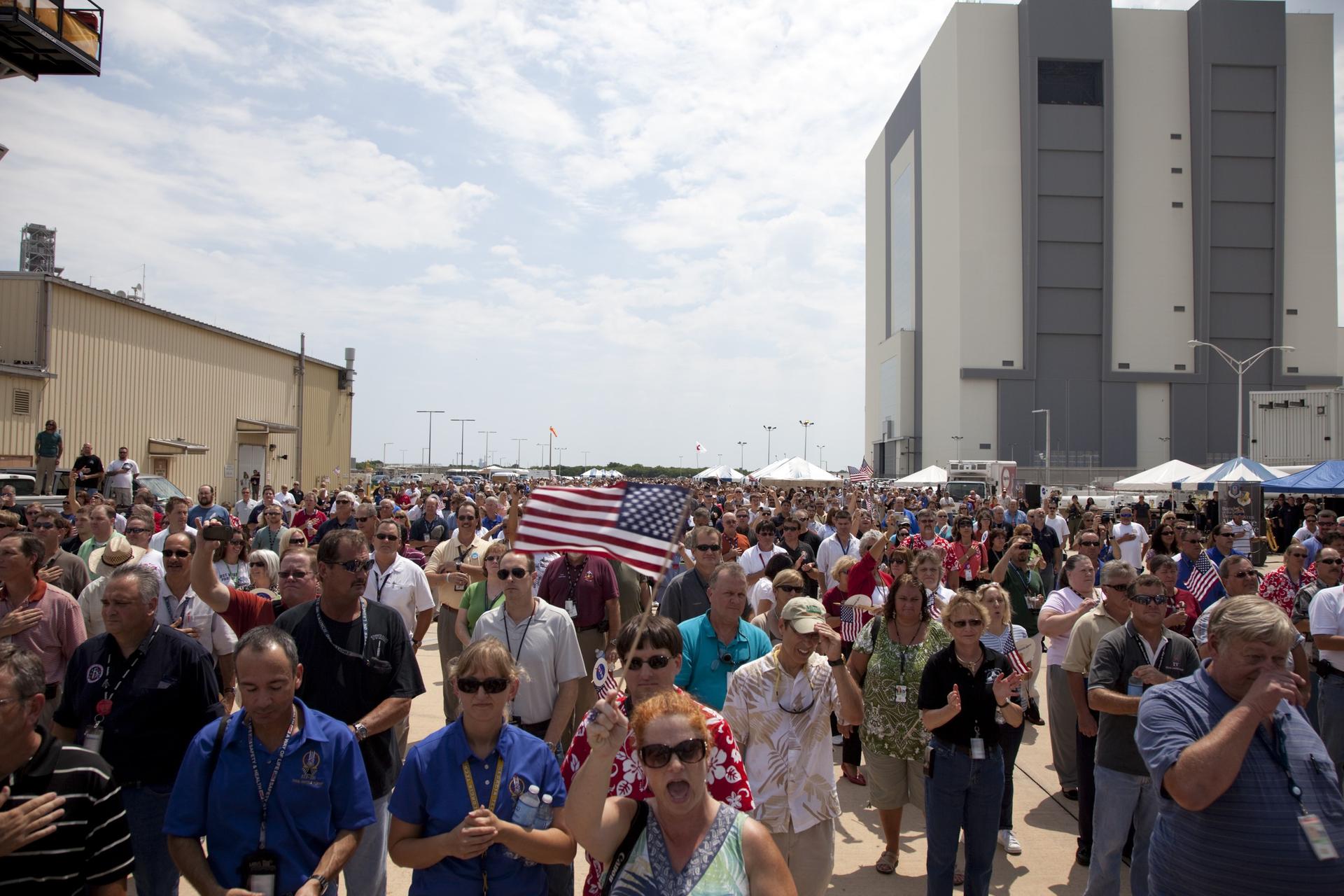 CAPE CANAVERAL, Fla. -- The thousands of workers who have processed, launched and landed the space shuttles for more than three decades welcome Atlantis home to NASA's Kennedy Space Center in Florida during an employee appreciation event. Atlantis' final return from space at 5:57 a.m. EDT secured the space shuttle fleet's place in history and brought a close to the America's Space Shuttle Program. STS-135 delivered spare parts, equipment and supplies to the International Space Station. STS-135 was the 33rd and final flight for Atlantis, which has spent 307 days in space, orbited Earth 4,848 times and traveled 125,935,769 miles. For more information visit, www.nasa.gov/mission_pages/shuttle/shuttlemissions/sts135/index.html. Photo credit: NASA/Frankie Martin