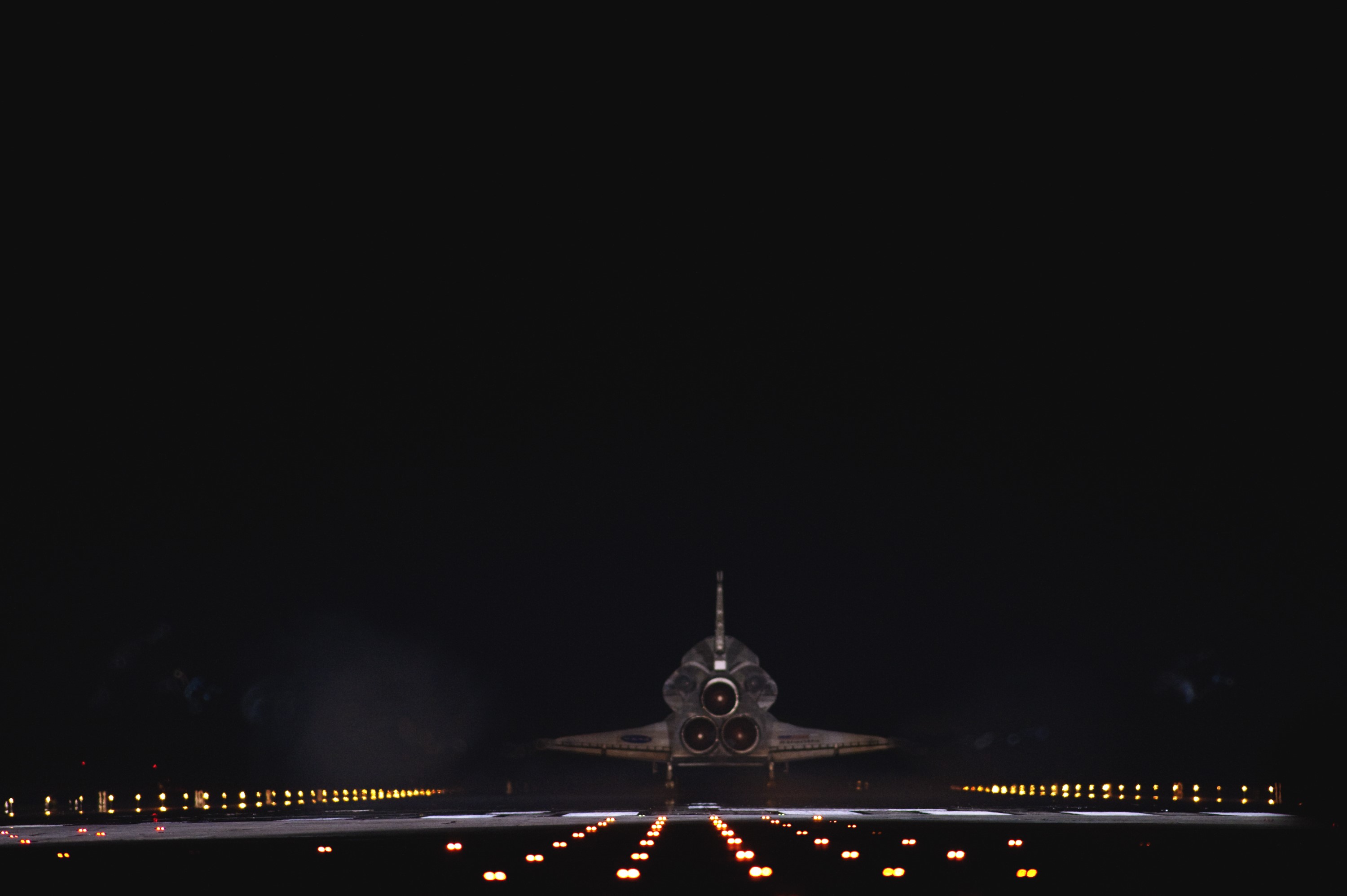CAPE CANAVERAL, Fla. -- Space shuttle Atlantis begins to disappear into the darkness as it rolls to a stop on Runway 15 on the Shuttle Landing Facility at NASA's Kennedy Space Center in Florida for the final time. Atlantis marked the 26th nighttime landing of NASA's Space Shuttle Program and the 78th landing at Kennedy. It also was the final mission for the shuttle program. STS-135 was the 33rd and final flight for Atlantis, which has spent 307 days in space, orbited Earth 4,848 times and traveled 125,935,769 miles. For more information on the space shuttle era, visit www.nasa.gov/mission_pages/shuttle/flyout. Photo credit: NASA/Sandra Joseph and Kevin O'Connell