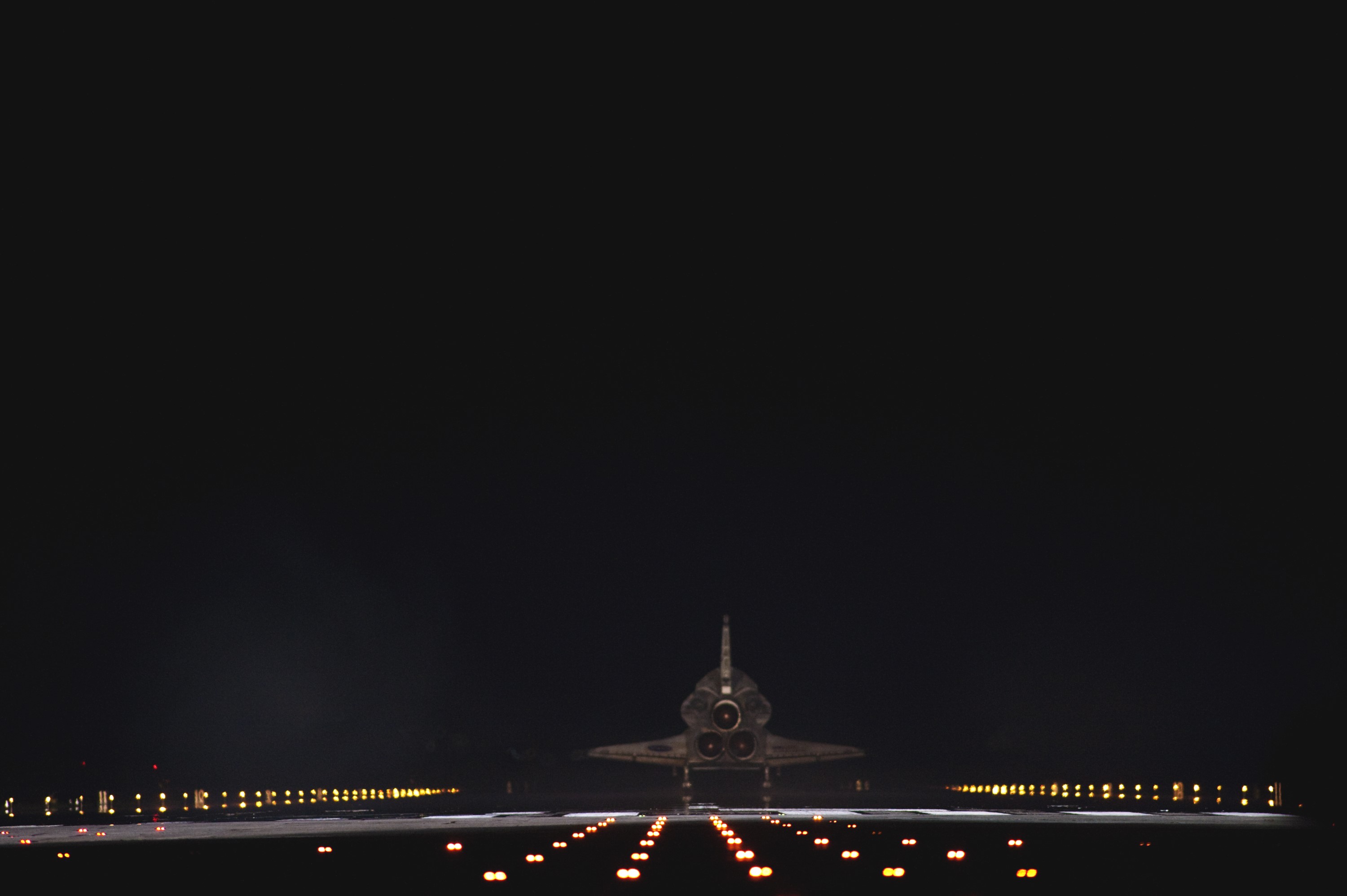 CAPE CANAVERAL, Fla. -- Space shuttle Atlantis begins to disappear into the darkness as it rolls to a stop on Runway 15 on the Shuttle Landing Facility at NASA's Kennedy Space Center in Florida for the final time. Atlantis marked the 26th nighttime landing of NASA's Space Shuttle Program and the 78th landing at Kennedy. It also was the final mission for the shuttle program. STS-135 was the 33rd and final flight for Atlantis, which has spent 307 days in space, orbited Earth 4,848 times and traveled 125,935,769 miles. For more information on the space shuttle era, visit www.nasa.gov/mission_pages/shuttle/flyout. Photo credit: NASA/Sandra Joseph and Kevin O'Connell