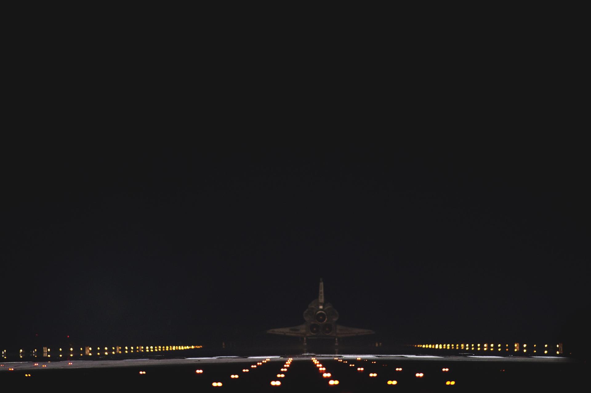 CAPE CANAVERAL, Fla. -- Space shuttle Atlantis disappears into the darkness as it rolls to a stop on Runway 15 on the Shuttle Landing Facility at NASA's Kennedy Space Center in Florida for the final time. Atlantis marked the 26th nighttime landing of NASA's Space Shuttle Program and the 78th landing at Kennedy. It also was the final mission for the shuttle program. STS-135 was the 33rd and final flight for Atlantis, which has spent 307 days in space, orbited Earth 4,848 times and traveled 125,935,769 miles. For more information on the space shuttle era, visit www.nasa.gov/mission_pages/shuttle/flyout. Photo credit: NASA/Sandra Joseph and Kevin O'Connell