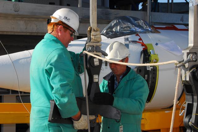 VANDENBERG AIR FORCE BASE, Calif. -- At NASA’s Space Launch Complex-2 at Vandenberg Air Force Base in California, technicians prepare a crane that will be used to lift the recently-arrived solid rocket motor for the United Launch Alliance Delta II rocket. The Delta II will carry NASA’s National Polar-orbiting Operational Environmental Satellite System Preparatory Project (NPP) satellite into space. NPP represents a critical first step in building the next-generation of Earth-observing satellites. NPP will carry the first of the new sensors developed for this satellite fleet, now known as the Joint Polar Satellite System (JPSS) to be launched in 2016. NPP is the bridge between NASA's Earth Observing System (EOS) satellites and the forthcoming series of JPSS satellites. The mission will test key technologies and instruments for the JPSS missions. NPP is targeted to launch Oct. 25. For more information, visit http://www.nasa.gov/NPP. Photo credit: NASA/VAFB, Mark Mackley