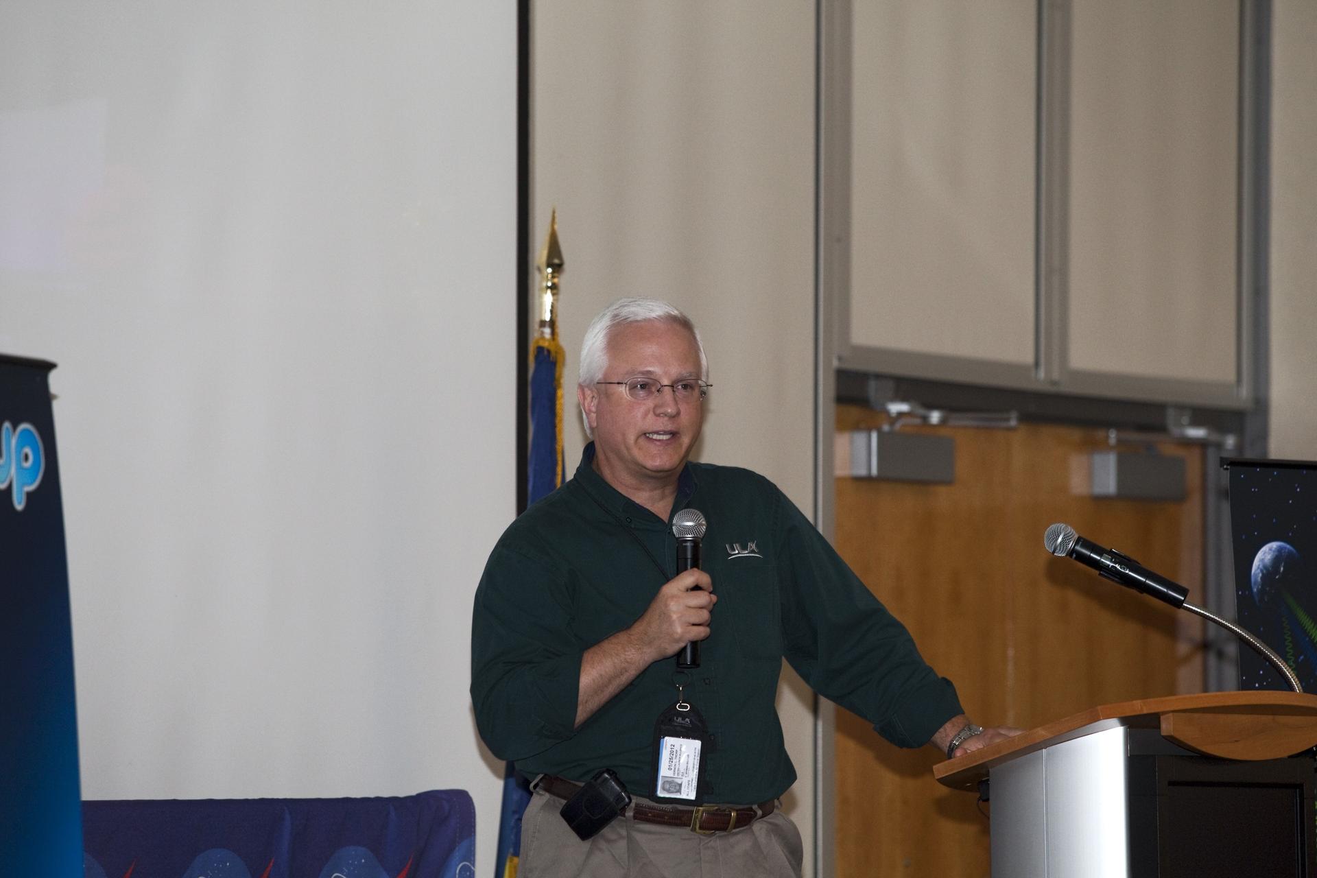 CAPE CANAVERAL, Fla. – Vern Thorp, manager of NASA Programs with United Launch Alliance, speaks to a group of Tweetup participants at the Kennedy Space Center Visitor Complex in Florida during prelaunch activities for the agency’s Gravity Recovery and Interior Laboratory (GRAIL) mission. Participants toured NASA’s Kennedy Space Center and got a close-up view of Space Launch Complex 17B at Cape Canaveral Air Force Station. The tweeters will share their experiences with followers through the social networking site Twitter. GRAIL will fly twin spacecraft in tandem around the moon to precisely measure and map variations in the moon’s gravitational field. The mission will provide the most accurate global gravity field to date for any planet, including Earth. This detailed information will reveal differences in the density of the moon’s crust and mantle and will help answer fundamental questions about the moon’s internal structure, thermal evolution, and history of collisions with asteroids. The aim is to map the moon’s gravity field so completely that future lunar vehicles can safely navigate anywhere on the moon’s surface. Launch is scheduled for 8:37:06 a.m. EDT Sept. 8. For more information, visit http://www.nasa.gov/grail. Photo credit: NASA/Gianni Woods
