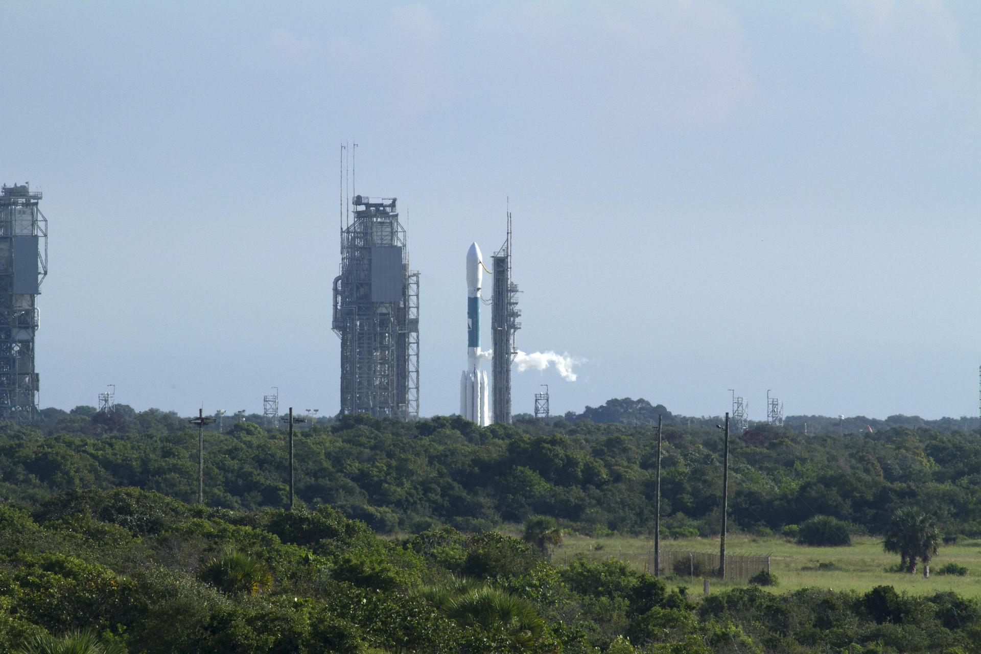 CAPE CANAVERAL, Fla. – Over a group of trees and bushes, the United Launch Alliance Delta II Heavy rocket carrying NASA’s twin Gravity Recovery and Interior Laboratory (GRAIL) mission launches off Space Launch Complex 17B on Cape Canaveral Air Force Station in Florida. At left is the pad’s mobile service tower. The spacecraft launched at 9:08:52 a.m. EDT Sept. 10. GRAIL-A will separate from the second stage of the rocket at about one hour, 21 minutes after liftoff, followed by GRAIL-B at 90 minutes after launch. The spacecraft are embarking on a three-month journey to reach the moon. GRAIL will fly twin spacecraft in tandem around the moon to precisely measure and map variations in the moon's gravitational field. The mission will provide the most accurate global gravity field to date for any planet, including Earth. This detailed information will reveal differences in the density of the moon's crust and mantle and will help answer fundamental questions about the moon's internal structure, thermal evolution, and history of collisions with asteroids. The aim is to map the moon's gravity field so completely that future moon vehicles can safely navigate anywhere on the moon’s surface. For more information, visit http://www.nasa.gov/grail. Photo credit: NASA/Kenny Allen