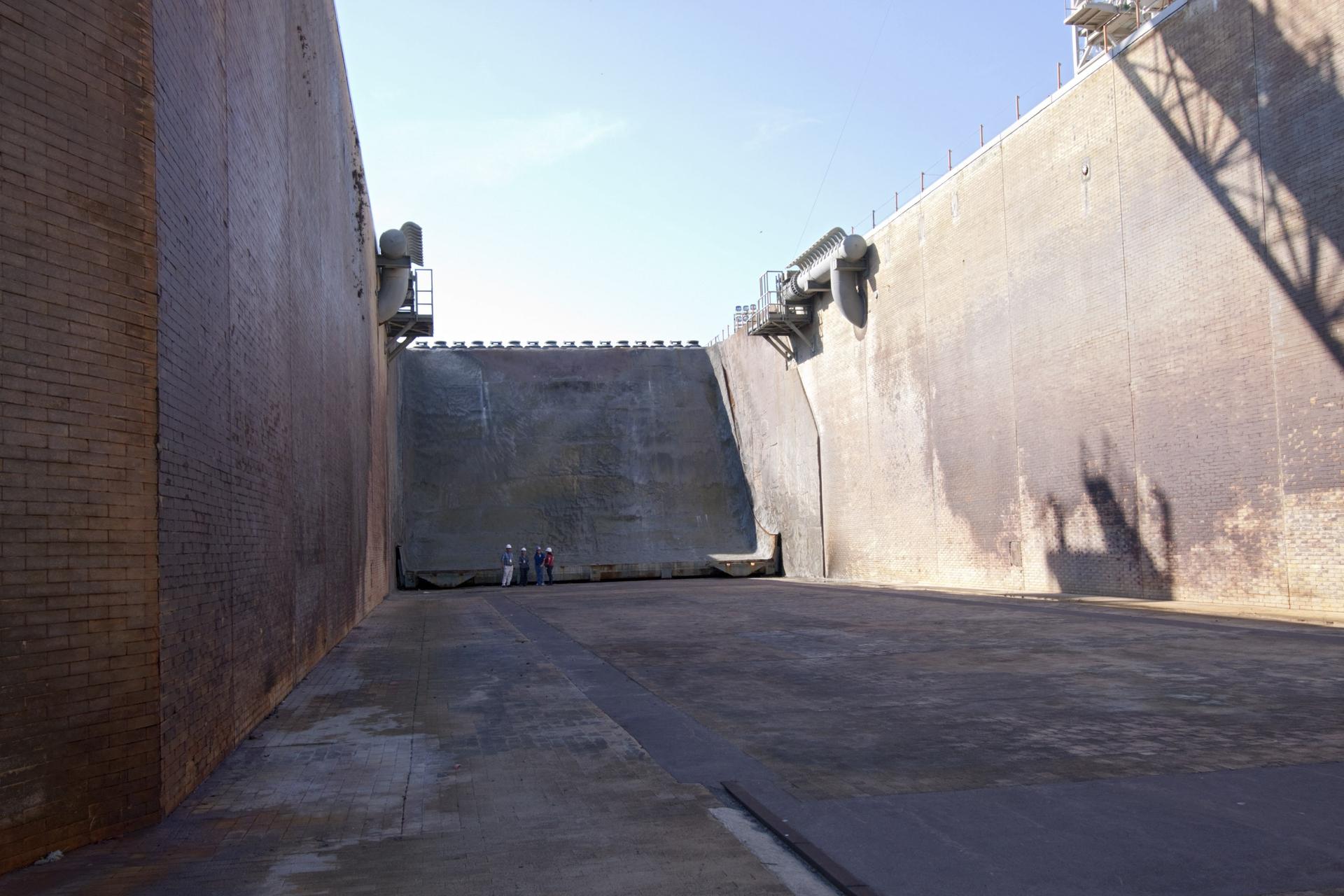 CAPE CANAVERAL, Fla. – The flame trench at Launch Pad 39B at NASA's Kennedy Space Center in Florida endured significant flames, vibrations and other stresses during the space shuttle era. Heading into the future, designers are looking for new, flame and vibration-resistant materials to line the trench. To help in the search, a team of mechanical engineering students at Louisiana State University are to build a scaled-down version of the flame trench that Kennedy's scientists can use to try out sample materials for the trench. If the samples work in the lab, they can be tried out in the real flame trenches at Launch Pad 39A and 39B. The launch pad has been refurbished extensively and work is continuing to modify the pad to support a variety of launch vehicles in the future. Photo credit: NASA/Jim Grossmann