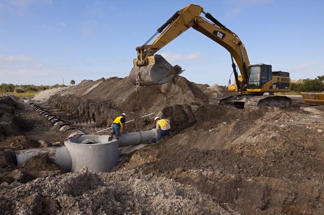 CAPE CANAVERAL, Fla. – Construction work progresses on Phase I of Exploration Park at NASA’s Kennedy Space Center in Florida. Exploration Park is near the Space Life Sciences Laboratory (SLSL). The first phase encompasses 60 acres just outside Kennedy’s security gates. Nine buildings will provide 350,000-square feet of work space, including educational, office, research and lab, and high-bay facilities. Each building is expected to be certified in the U.S. Green Building Council’s Leadership in Environmental and Energy Design (LEED). Exploration Park is designed to be a strategically located complex, adjacent to the SLSL, for servicing diverse tenants and uses that will engage in activities to support space-related activities of NASA, other government agencies and the U.S. commercial space industry. The SLSL will be the anchor facility for the park. Photo credit: NASA/Kim Shiflett