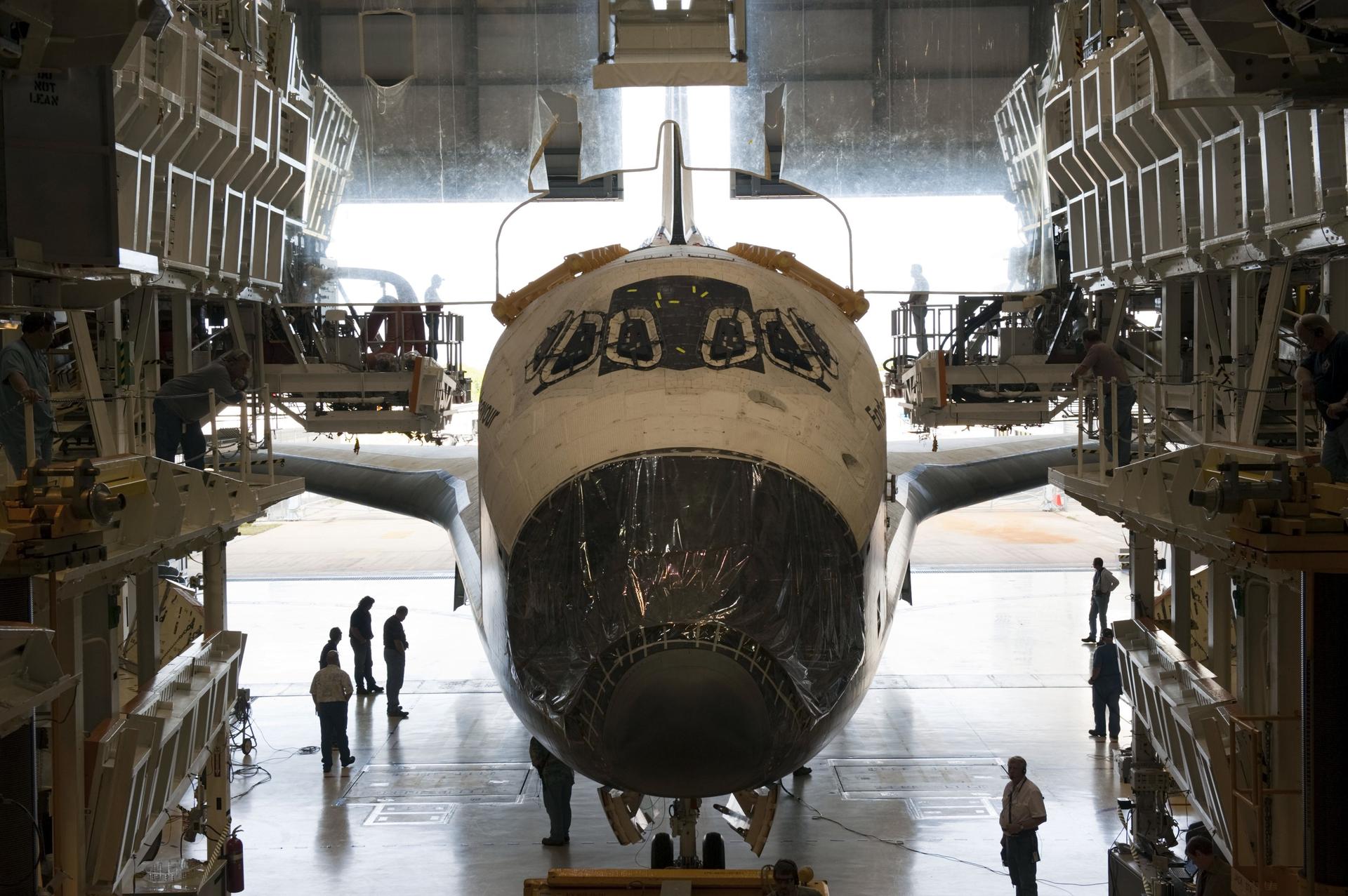 CAPE CANAVERAL, Fla. – At NASA’s Kennedy Space Center in Florida, space shuttle Endeavour is towed inside Orbiter Processing Facility-2 (OPF-2). Shuttle Endeavour will remain in OPF-2 so that the orbiter maneuvering system (OMS) pods and forward reaction control system can be installed. Technicians also will offload water and Freon gas from lines located in Endeavour’s midbody. The work is part of Endeavour’s transition and retirement processing. The spacecraft is being prepared for public display at the California Science Center in Los Angeles. Endeavour flew 25 missions, spent 299 days in space, orbited Earth 4,671 times and traveled 122, 883, 151 miles over the course of its 19-year career. Endeavour’s STS-134 and final mission was completed after landing on June 1, 2011. Photo credit: Kim Shiflett