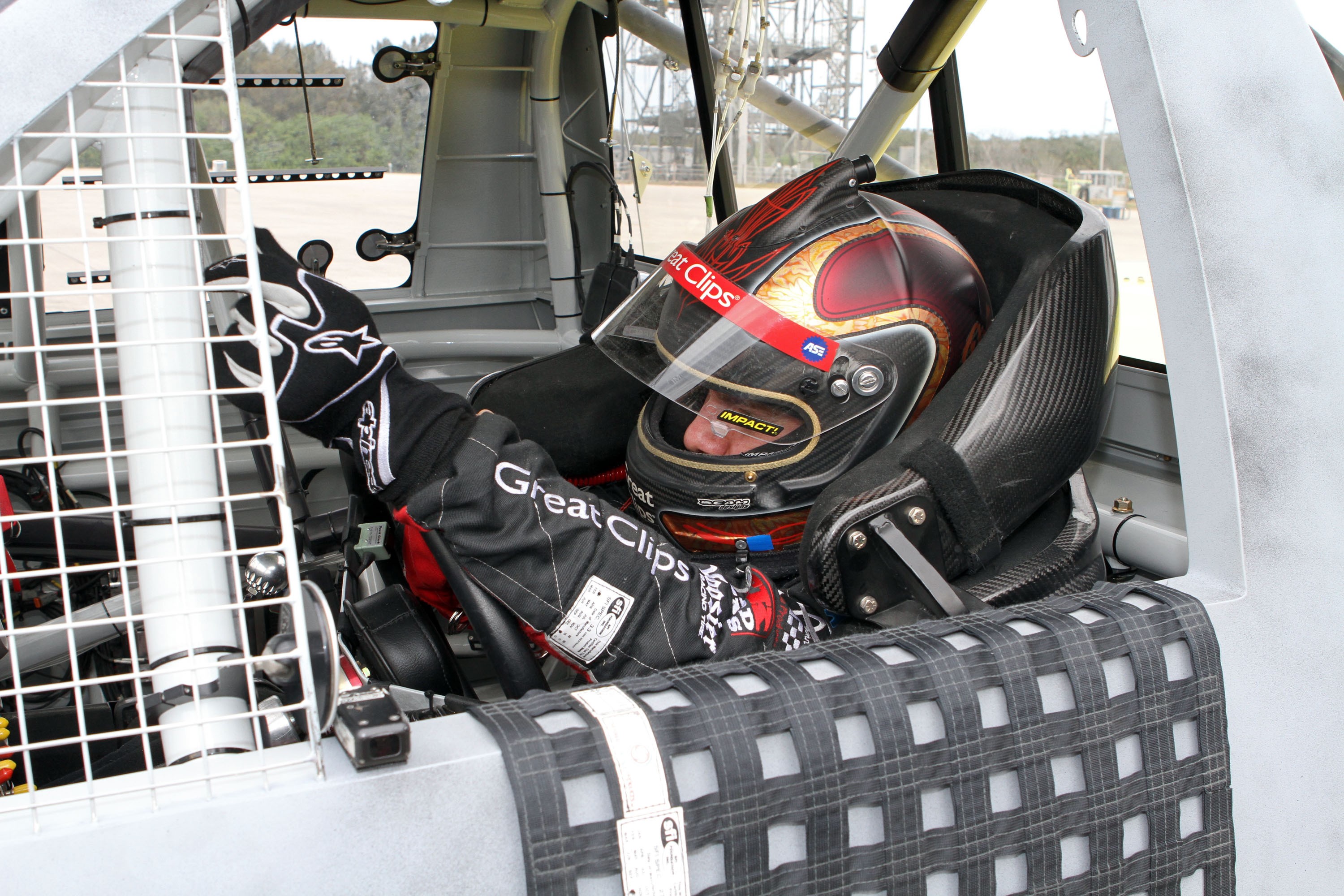 CAPE CANAVERAL, Fla. - At NASA’s Kennedy Space Center in Florida, NASCAR racer Jason Leffler with Kyle Busch Motorsports (KBM) prepares to drive his instrument-laden vehicle down the three-mile-long Shuttle Landing Facility runway. The operation is part of KBMs’ program to test aerodynamic and real-world capabilities on one of the flattest surfaces in the world. Racing teams have been using the runway for testing since 2008. KBM signed a Space Act Agreement with NASA to use the facility’s runway. Photo Credit: NASA/Kim Shiflett