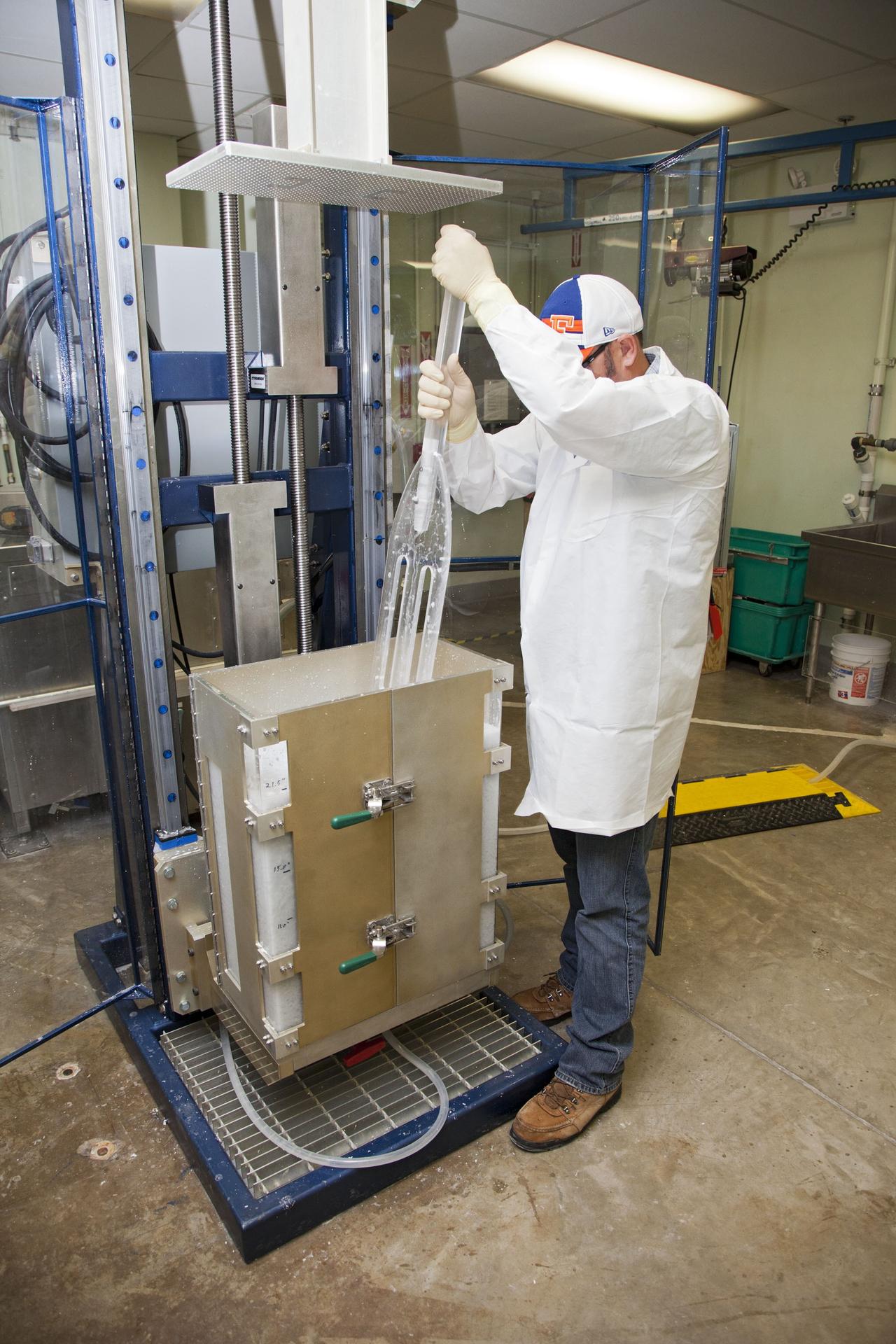 CAPE CANAVERAL, Fla. -- Chris Keeling, a United Space Alliance technician at NASA's Kennedy Space Center in Florida, manufactures the heat shield tiles that will be installed to the backshell of the Orion Multi-Purpose Crew Vehicle's Exploration Flight Test EFT-1 capsule. The work to manufacture and inspect the tiles is taking place in Kennedy's Thermal Protection System Facility. EFT-1 will be used during Orion's first test flight in space. For more information, visit www.nasa.gov/orion. Photo credit: Frankie Martin