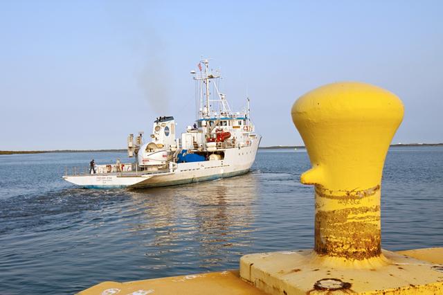 CAPE CANAVERAL, Fla. -- NASA’s Freedom Star boat sets out for a day of testing after departing from port near Cape Canaveral Air Force Station in Florida for the Atlantic Ocean with NASA’s Mobile Aerospace Reconnaissance System, or MARS, secured aboard. MARS, run by NASA’s Langley Research Center in Hampton, Va., with its spatial, hyperspectral, thermal, and directed energy capabilities will be used for thermal imaging testing for the upcoming SpaceX Falcon 9 and Dragon capsule test flight to the International Space Station. During today’s test, the MARS X-band radar and kineto tracking mount KTM were tested to ensure that they were synchronized to receive a rocket launch feed. The radar was used to identify an object to see if the KTM could lock on to and track it. The MARS team performed maintenance on the system, confirmed communications links, and tested the design of the mounting system and environmental enclosure. Photo credit: NASA/Jim Grossmann