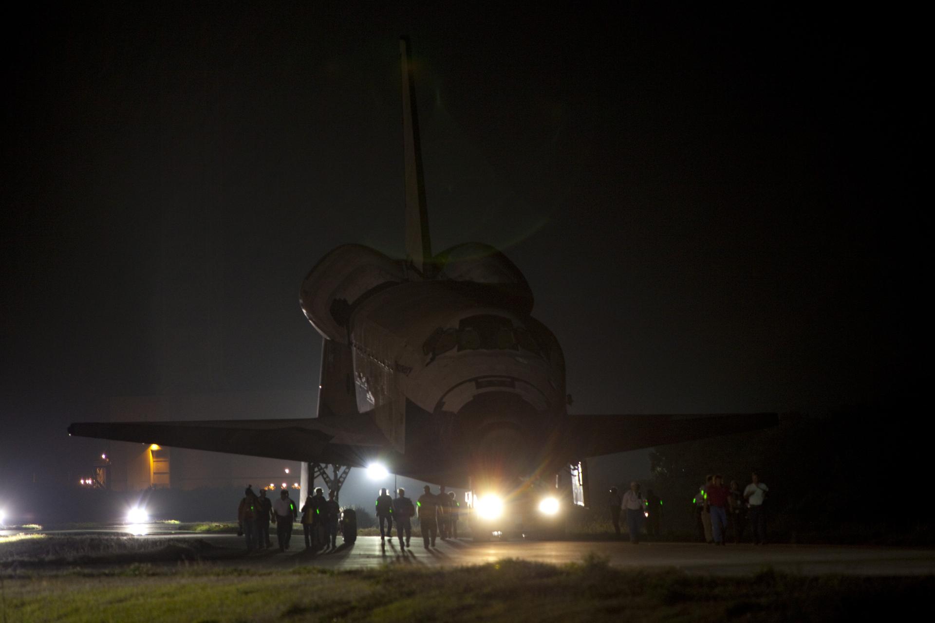 CAPE CANAVERAL, Fla. – Space shuttle Discovery makes its way to the Shuttle Landing Facility, or SLF, before dawn at NASA’s Kennedy Space Center in Florida. Its move from the Vehicle Assembly Building got under way at 5 a.m. EDT. At the SLF, Discovery will be hoisted onto a Shuttle Carrier Aircraft, or SCA, with the aid of a mate-demate device. The SCA, a modified Boeing 747 jet airliner, is scheduled to ferry Discovery to the Washington Dulles International Airport in Virginia on April 17, after which the shuttle will be placed on permanent public display in the Smithsonian's National Air and Space Museum Steven F. Udvar-Hazy Center. For more information on shuttle transition and retirement activities, visit http://www.nasa.gov/transition. Photo credit: NASA/Dimitri Gerondidakis