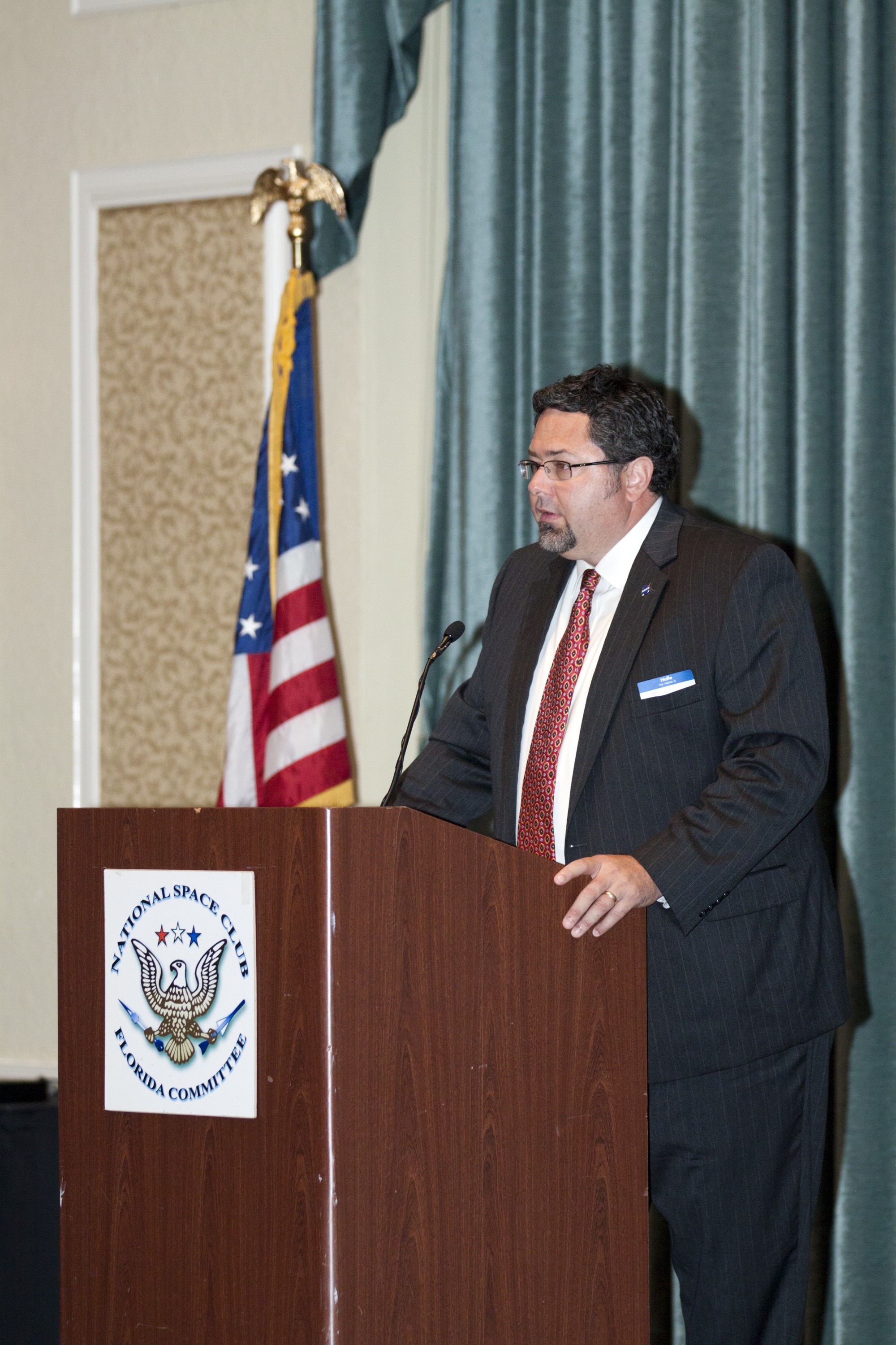COCOA BEACH, Fla.. --Todd May, program manager of the Space Launch System, addresses the National Space Club's Florida Committee during the organization's monthly luncheon in Cocoa Beach, Fla. May, who works at NASA's Marshall Space Flight Center in Huntsville, Ala., discussed the status of the SLS program. Photo credit: NASA/Kim Shiflett