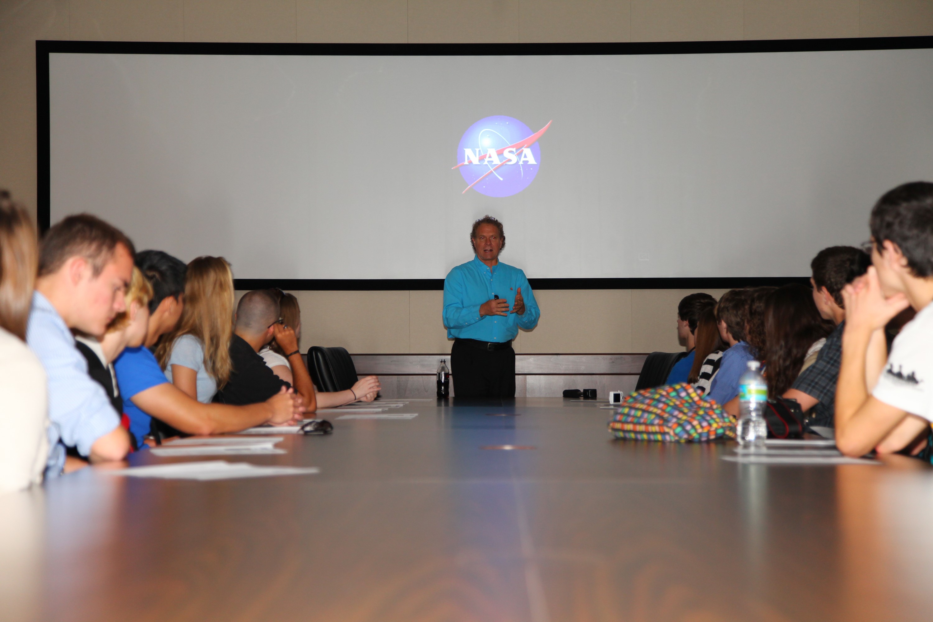 CAPE CANAVERAL, Fla. – At NASA’s Kennedy Space Center in Florida, students from Brevard County Schools gather in the Headquarters Building fourth floor conference room for a presentation about the past, present and future of space exploration by the Director of Safety and Mission Assurance Russell Romanella, during the Brevard Top Scholars event hosted by the Education Office. The event was held to honor the top two scholars of the 2012 graduating student class from each of Brevard County’s public high schools. The students toured Launch Complex 39 and the orbiter processing facility, heard from speakers on a variety of topics and received a personalized certificate during their day at Kennedy Space Center. Photo credit: NASA/Frankie Martin