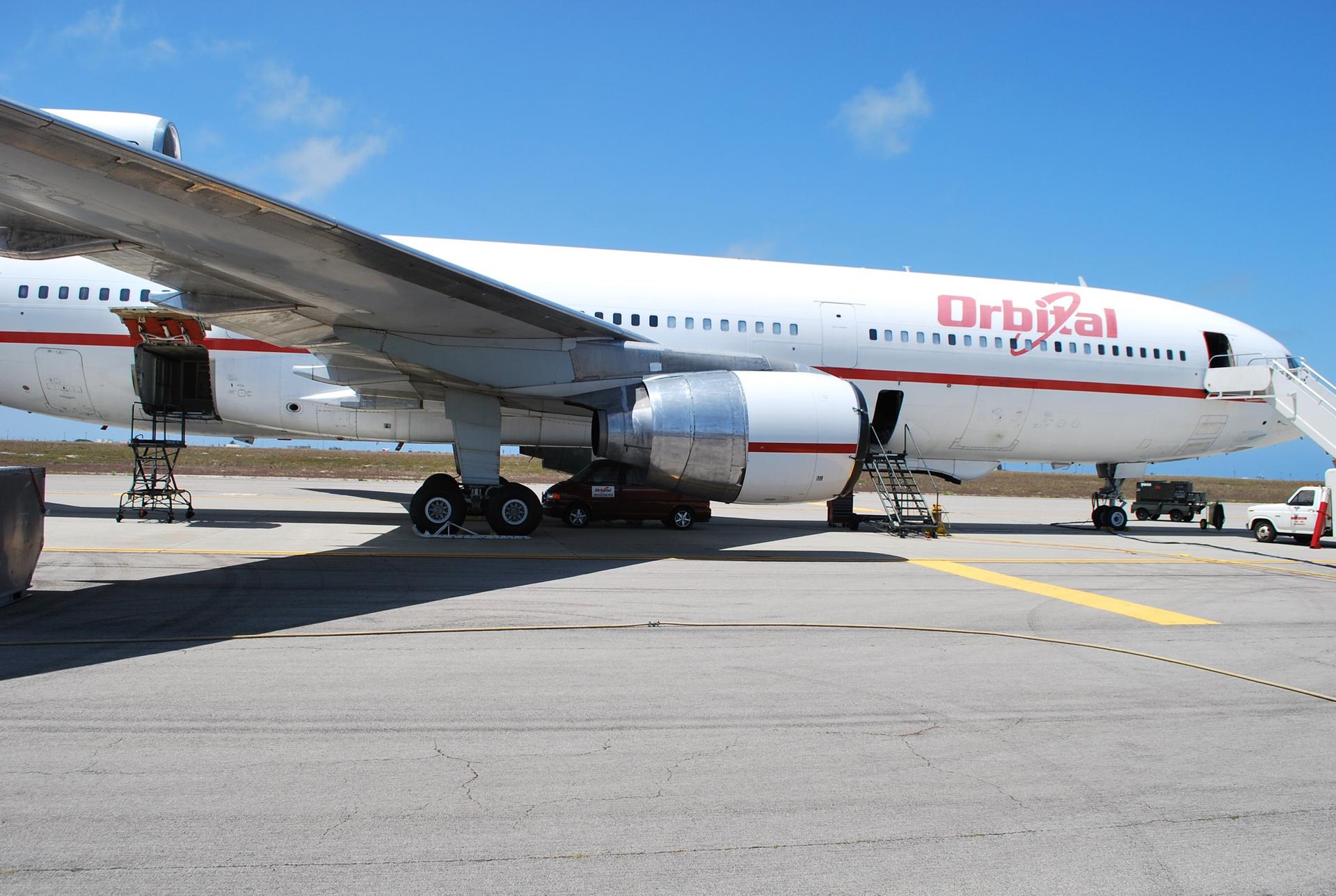 VANDENBERG AIR FORCE BASE, Calif. -- On the runway at Vandenberg Air Force Base in California, the Orbital Sciences L-1011 carrier aircraft is readied for flight. Once the Pegasus XL rocket with NASA's Nuclear Spectroscopic Telescope Array NuSTAR spacecraft is attached, the L-1011 will fly to the Ronald Reagan Ballistic Missile Defense Test Site at the Pacific Ocean’s Kwajalein Atoll. The Pegasus will launch NuSTAR into space where the high-energy x-ray telescope will conduct a census for black holes, map radioactive material in young supernovae remnants, and study the origins of cosmic rays and the extreme physics around collapsed stars. For more information, visit science.nasa.gov/missions/nustar/. Photo credit: NASA/Randy Beaudoin, VAFB