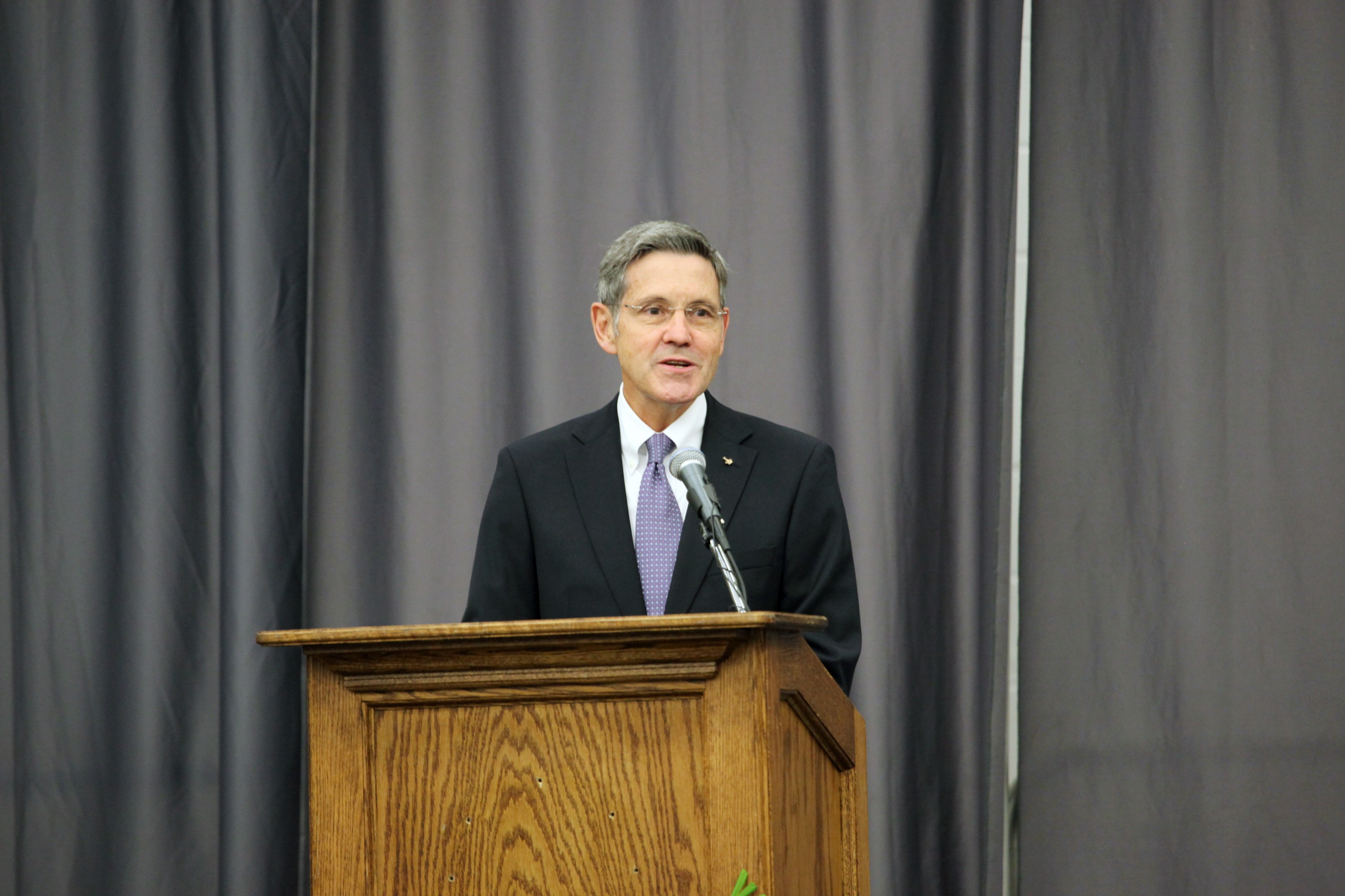 MELBOURNE, Fla. – NASA Kennedy Space Center Director and former astronaut Bob Cabana addresses the audience during opening ceremonies for the university's 25th annual Space Studies Program session at the Florida Institute of Technology in Melbourne, Fla. The nine-week intensive course is designed for post-graduate university students and professionals during the summer. The program is hosted by a different country each year, providing a unique educational experience for participants from around the globe. NASA Kennedy Space Center and Florida Tech are co-hosting this year's event which runs from June 4 to Aug. 3. This year, there are about 125 participants representing 31 countries. For more information, visit http://www.isunet.edu. Photo credit: NASA/Dimitri Gerondidakis