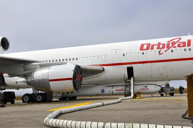 VANDENBERG AIR FORCE BASE, Calif. – An Orbital Sciences’ Pegasus rocket and NASA’s Nuclear Spectroscopic Telescope Array, or NuSTAR, are installed under Orbital’s L-1011 carrier aircraft and await departure from Vandenberg Air Force Base in California for the U.S. Army's Ronald Reagan Ballistic Missile Defense Test Site on Kwajalein Atoll, part of the Marshall Islands in the Pacific Ocean. The Pegasus, mated to its NuSTAR payload, will be launched from the carrier aircraft 117 nautical miles south of Kwajalein at latitude 6.75 degrees north of the equator. The high-energy X-ray telescope will conduct a census of black holes, map radioactive material in young supernovae remnants, and study the origins of cosmic rays and the extreme physics around collapsed stars. Launch is scheduled for June 13. For more information, visit http://www.nasa.gov/nustar. Photo credit: NASA/Randy Beaudoin, VAFB