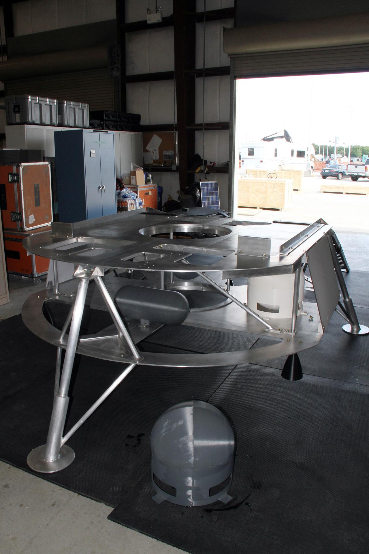 CAPE CANAVERAL, Fla. – Assembly of the prototype lander for NASA’s Regolith and Environment Science and Oxygen and Lunar Volatile Extraction, or RESOLVE, project is complete in a test facility behind the Operations and Checkout Building at NASA’s Kennedy Space Center in Florida. RESOLVE consists of a rover and drill provided by the Canadian Space Agency to support a NASA payload that is designed to prospect for water, ice and other lunar resources. RESOLVE also will demonstrate how future explorers can take advantage of resources at potential landing sites by manufacturing oxygen from soil. NASA will be conducting field tests in July outside of Hilo, Hawaii, with equipment and concept vehicles that demonstrate how explorers might prospect for resources and make their own oxygen for survival while on other planetary bodies. For more information, visit http://www.nasa.gov/exploration/analogs/index.html. Photo credit: NASA/Ben Smegelsky