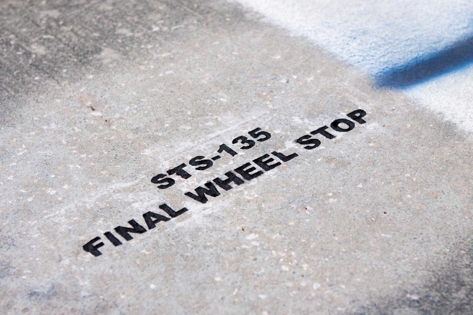 CAPE CANAVERAL, Fla. - At the Shuttle Landing Facility SLF at NASA’s Kennedy Space Center in Florida, the final wheel stop of an orbiter is marked. Space shuttle Atlantis completed the STS-135 mission by landing at the SLF on July 21, 2011, at 5:57 a.m. A special plaque will be permanently mounted at the runway’s edge to commemorate the final shuttle landing. Atlantis flew 33 missions, completed 4,848 orbits of the Earth, traveled nearly 126 million miles and spent 307 days in space. Atlantis carried 207 astronauts to space. Photo credit: NASA/Jim Grossmann