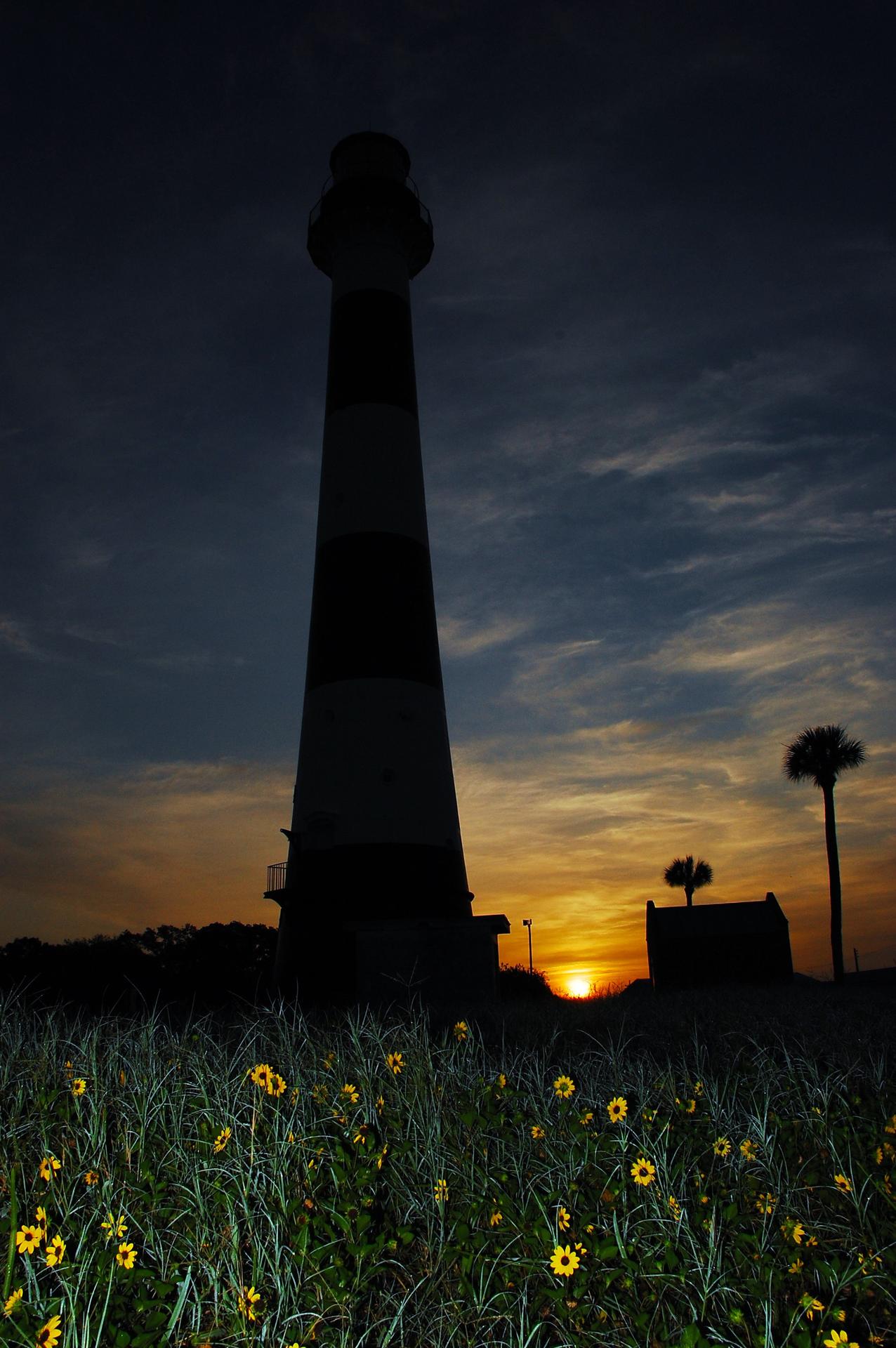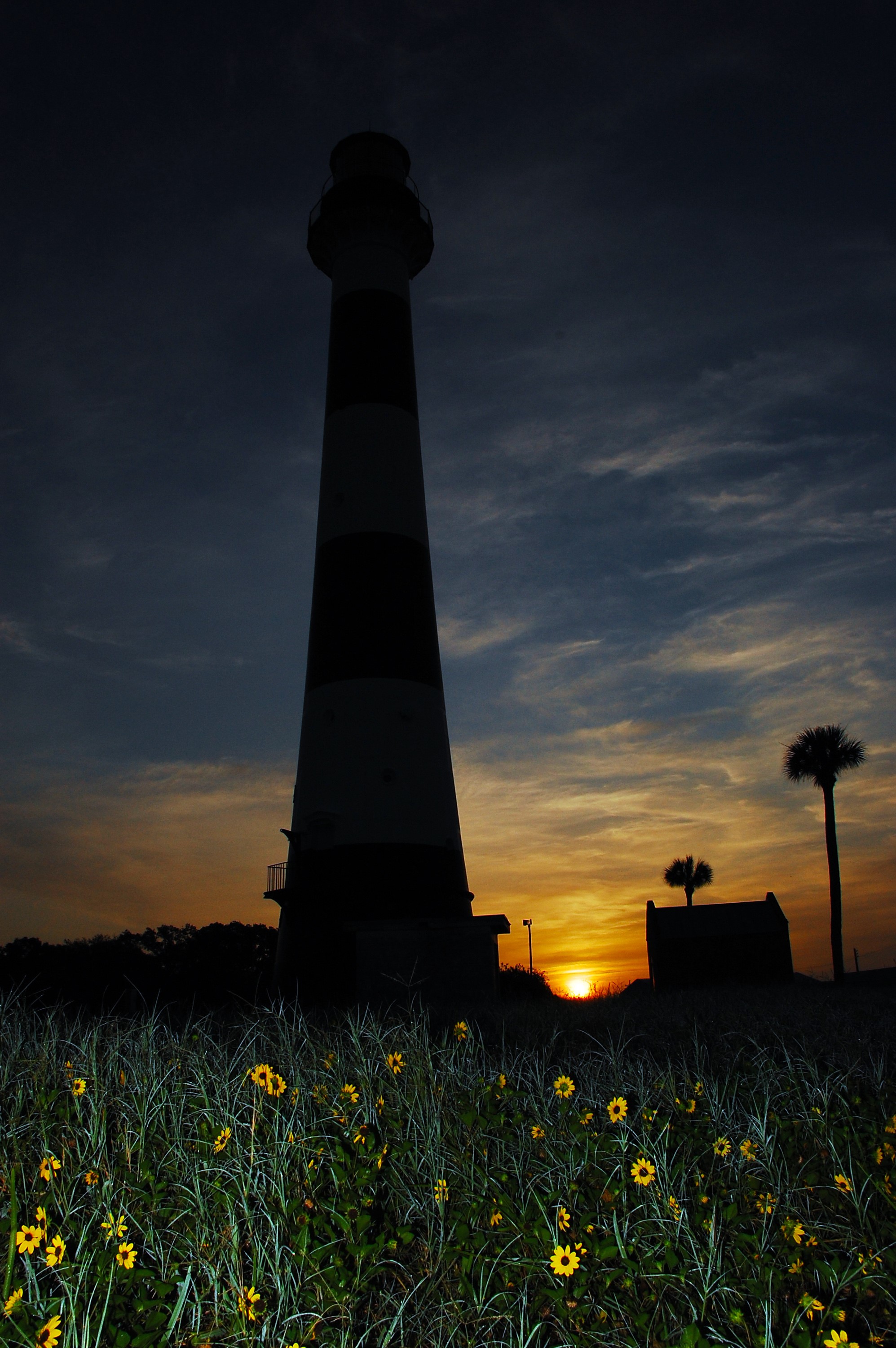 Cape Canaveral Air Force Station, Fla. -- As the sun rises, the Cape Canaveral Lighthouse is silhouetted against the early morning sky. The Canaveral light is the only operating lighthouse owned by the U.S. Air Force. In 2000, the Coast Guard transferred ownership of the lighthouse structure and its grounds to the Air Force, which is now responsible for maintaining it. The U.S. Coast Guard continues to operate the modern first-order beacon as an active navigational aid. The first lighthouse at Cape Canaveral was built near the tip of the Cape in 1848. The structure was only about 60 feet high with a rather dim light powered by whale oil. In 1859, work began nearby on a new, taller iron structure. Construction was halted during the Civil War, and the lighthouse finally was finished in 1868. The structure, with a brick lining inside its iron exterior, was painted with its "daymark" black and white horizontal bands in 1873 to make it easier to identify during the day as a navigation point. Between 1892 and 1894, the lighthouse was dismantled and moved to its new home about a mile from the coast, where it stands today. Photo credit: NASA/Ben Smegelsky