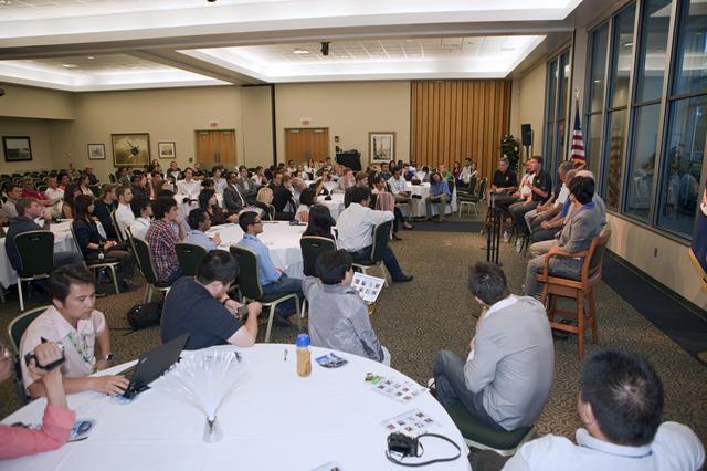 CAPE CANAVERAL, Fla. – Current and former NASA and international astronauts spoke to participants of the International Space University on the future of human spaceflight during a panel discussion at the Kennedy Space Center Visitor Complex in Florida. Participating in the discussion from left, are Kennedy Space Center Director Bob Cabana Winston Scott, dean of the College of Aeronautics at Florida Institute of Technology and former NASA astronaut Kent Rominger, vice president with Alliant Techsystems and former NASA astronaut Nicole Stott, NASA astronaut currently on detail at Kennedy Space Center Jim Voss, director of advanced programs at Sierra Nevada Corporation and former NASA astronaut Garrett Reisman, senior engineer with SpaceX and former NASA astronaut Ken Bowersox, former NASA astronaut and Chiaki Mukai, a Japan Aerospace Exploration Agency astronaut. The International Space University is a nine-week intensive course designed for post-graduate university students and professionals during the summer. The program is hosted by a different country each year, providing a unique educational experience for participants from around the world. NASA Kennedy Space Center and the Florida Institute of Technology in Melbourne, Fla., are co-hosting this year’s event which runs from June 4 to Aug. 3. There are about 125 participants representing 31 countries. For more information, visit http://www.isunet.edu. Photo credit: NASA/Kim Shiflett
