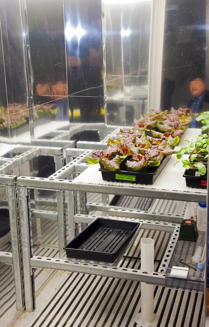 CAPE CANAVERAl, Fla. - Dr. Mason Peck, NASA's chief Technologist, saw some plant experiments during a tour of the Space Life Sciences Laboratory at Kennedy. Peck toured the lab facility during a visit to the space center. Photo credit: NASA/Frankie Martin