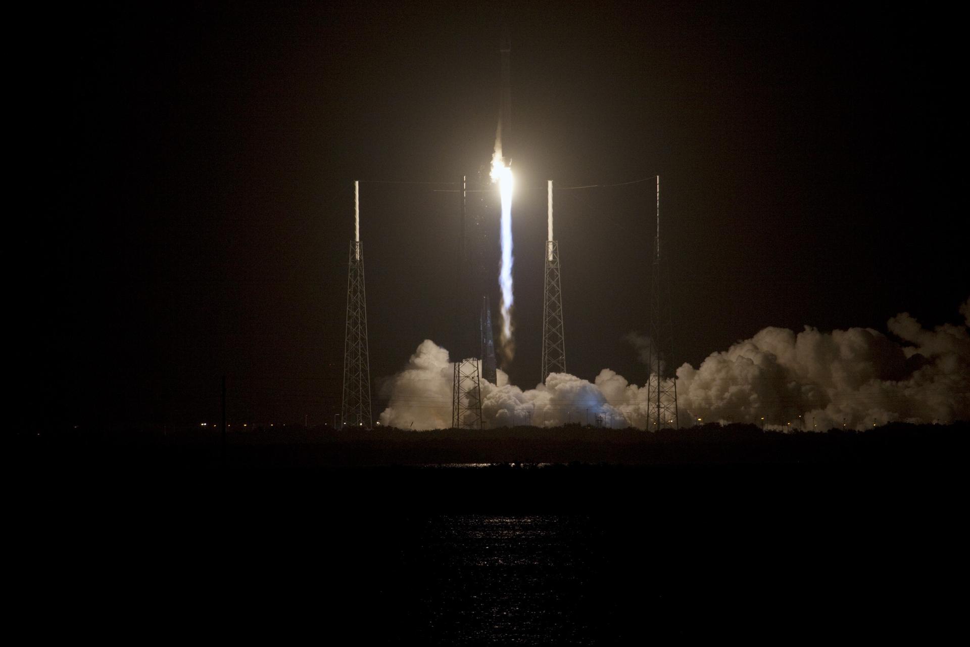 CAPE CANAVERAL, Fla. – The United Launch Alliance Atlas V rocket carrying NASA's Radiation Belt Storm Probes, or RBSP, disappears into the night sky over Space Launch Complex 41 on Cape Canaveral Air Force Station in Florida at 4:05 a.m. EDT. RBSP will explore changes in Earth's space environment caused by the sun -- known as "space weather" -- that can disable satellites, create power-grid failures and disrupt GPS service. The mission also will provide data on the fundamental radiation and particle acceleration processes throughout the universe. For more information on RBSP, visit http://www.nasa.gov/rbsp. Photo credit: NASA/Jim Grossmann