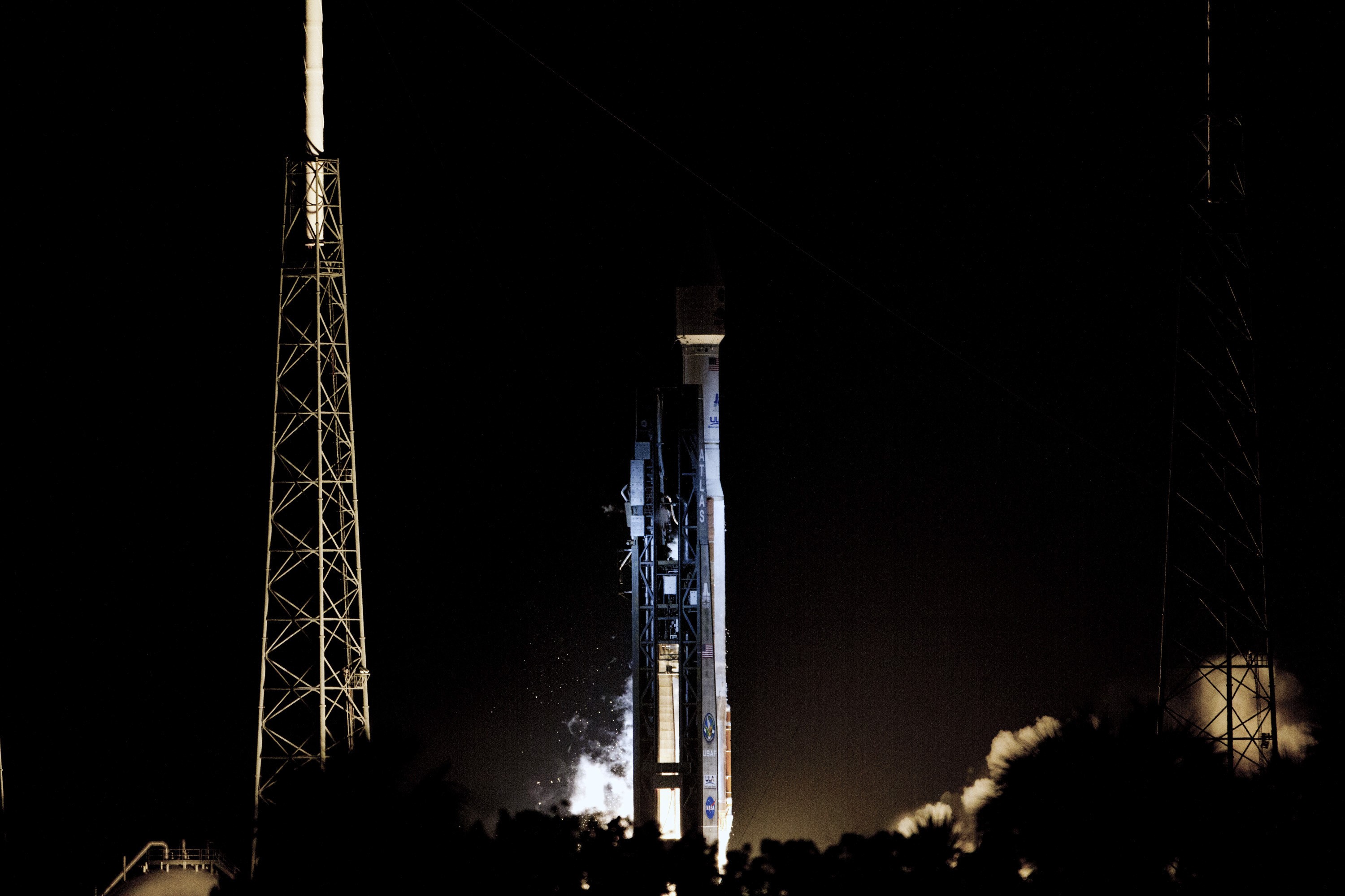 CAPE CANAVERAL, Fla. - The engines ignite under the United Launch Alliance Atlas V rocket at 4:05 a.m. EDT lifting NASA's Radiation Belt Storm Probes, or RBSP, off Space Launch Complex 41 on Cape Canaveral Air Force Station in Florida. RBSP will explore changes in Earth's space environment caused by the sun -- known as "space weather" -- that can disable satellites, create power-grid failures and disrupt GPS service. The mission also will provide data on the fundamental radiation and particle acceleration processes throughout the universe. For more information on RBSP, visit http://www.nasa.gov/rbsp. Photo credit: NASA/Kenny Allen