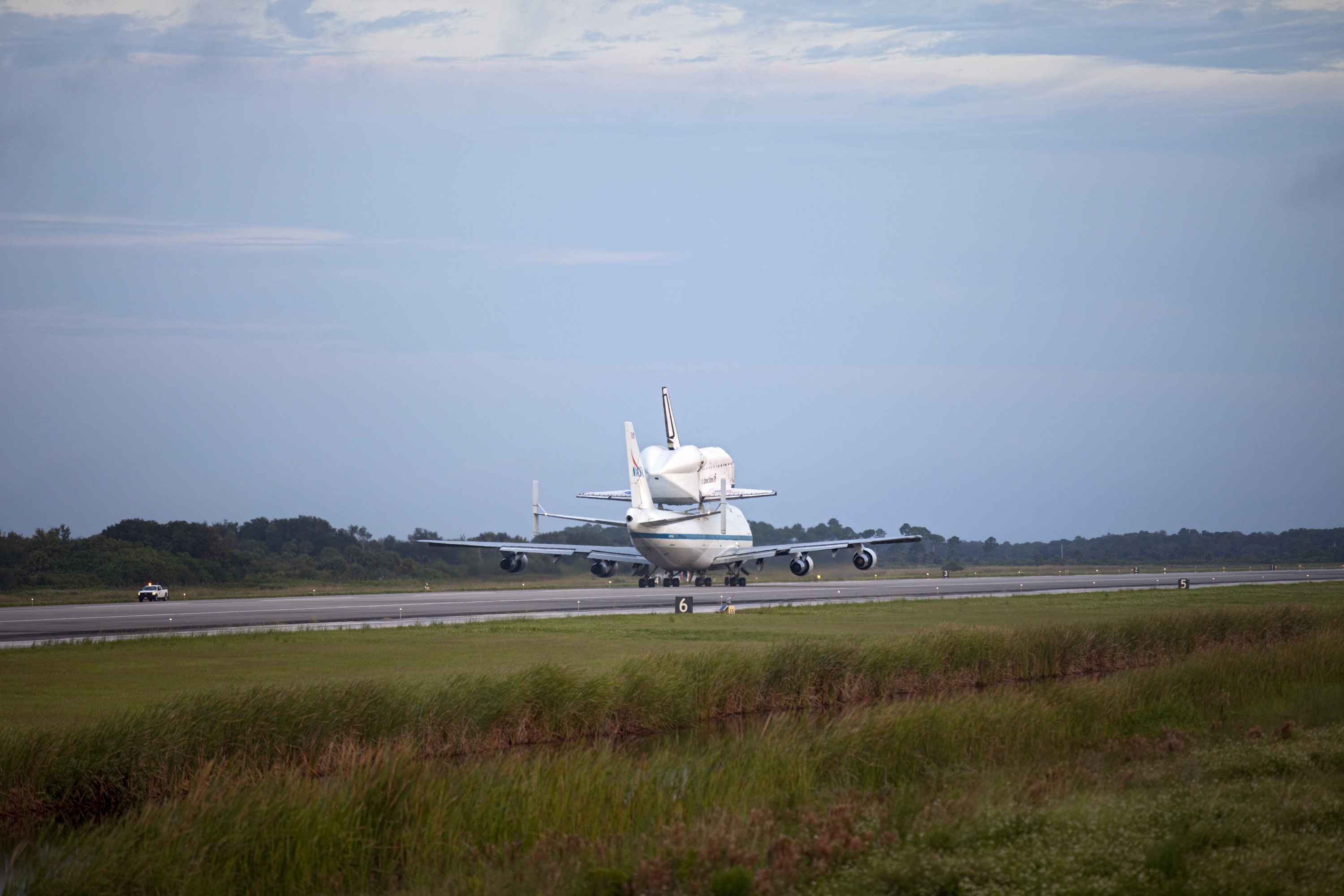 CAPE CANAVERAL, Fla. – At the Shuttle Landing Facility at NASA's Kennedy Space Center in Florida, NASA's Shuttle Carrier Aircraft, or SCA, with the space shuttle Endeavour mounted atop, taxis on the runway for its ferry flight to California. The SCA, a modified 747 jetliner, will fly Endeavour to Los Angeles where it will be placed on public display at the California Science Center. This is the final ferry flight scheduled in the Space Shuttle Program era. For more information on the shuttles' transition and retirement, visit http://www.nasa.gov/transition. Photo credit: NASA/Frankie Martin