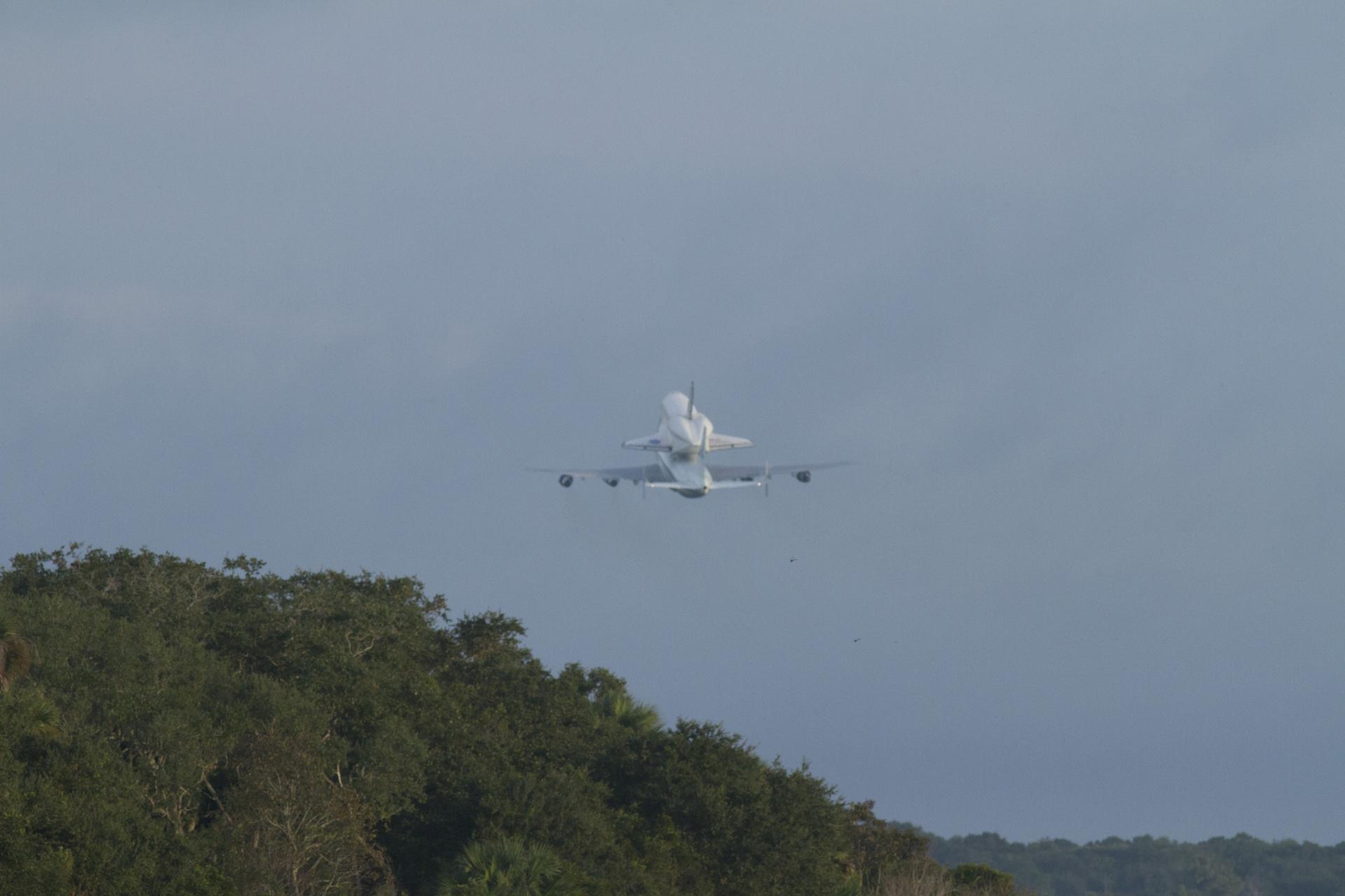 CAPE CANAVERAL, Fla. – Space shuttle Endeavour, mounted atop NASA's Shuttle Carrier Aircraft or SCA, flies over the Shuttle Landing Facility at NASA's Kennedy Space Center in Florida. The SCA, a modified 747 jetliner, will fly Endeavour to Los Angeles where it will be placed on public display at the California Science Center. This is the final ferry flight scheduled in the Space Shuttle Program era. For more information on the shuttles' transition and retirement, visit http://www.nasa.gov/transition. Photo credit: NASA/Rick Wetherington