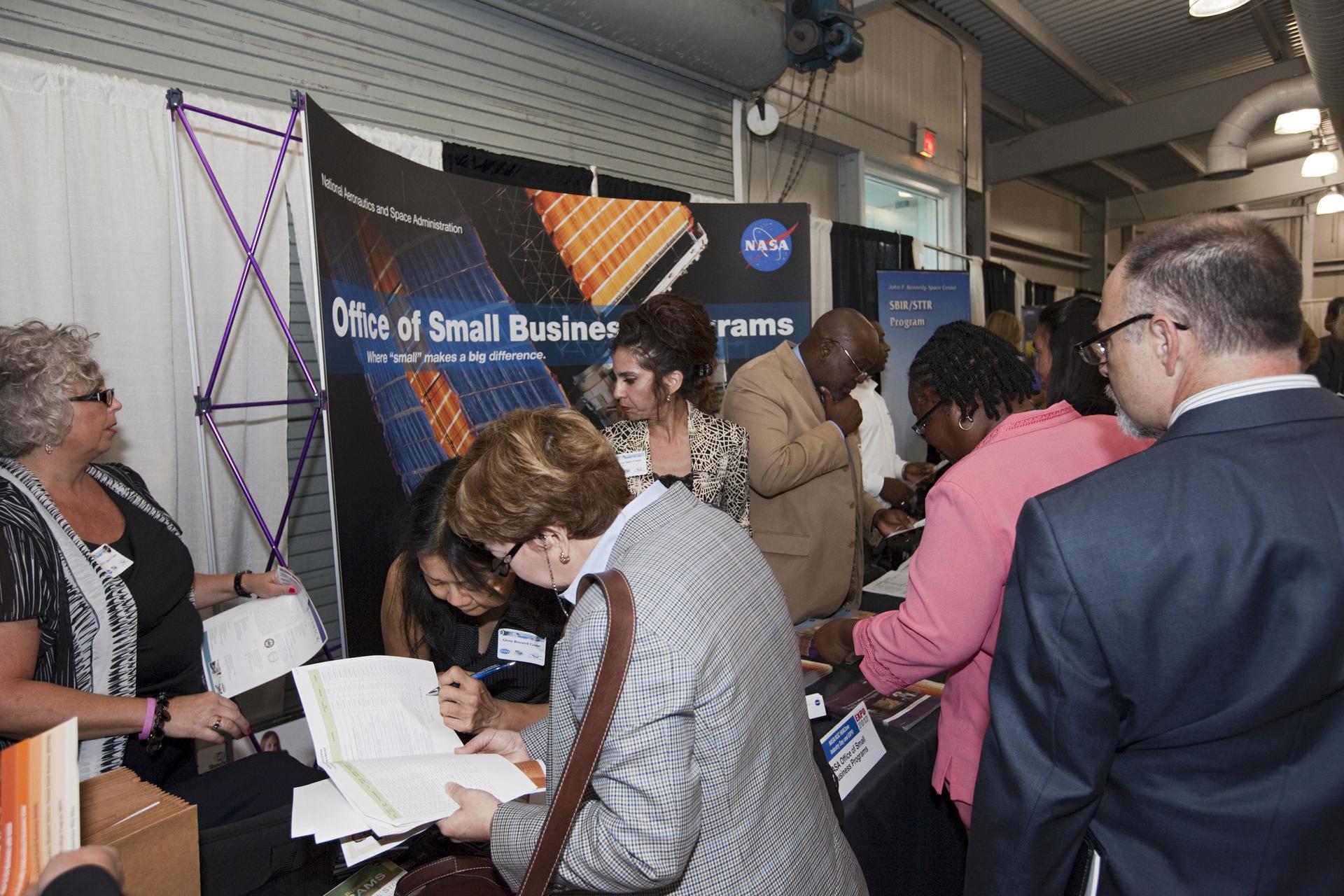 PORT CANAVERAL, Fla. – Local business representatives attended NASA's Historically Underutilized Business Zone, or HUBZone, Industry Day and Expo 2012 on Oct. 16. Exhibitors included vendors from product and service areas, such as engineering services, computer technology, communication equipment and services, and construction and safety products. The event was hosted for business leaders who are interested in learning about government contracting opportunities and what local and national vendors have to offer. The expo was held in Cruise Terminal 4 at Port Canaveral, Fla. The annual trade show is sponsored by Kennedy's Prime Contractor Board, the U.S. Air Force 45th Space Wing and the Canaveral Port Authority. It featured about 175 large and small businesses and government exhibitors from Brevard County and across the nation. Photo credit: NASA/ Kim Shiflett