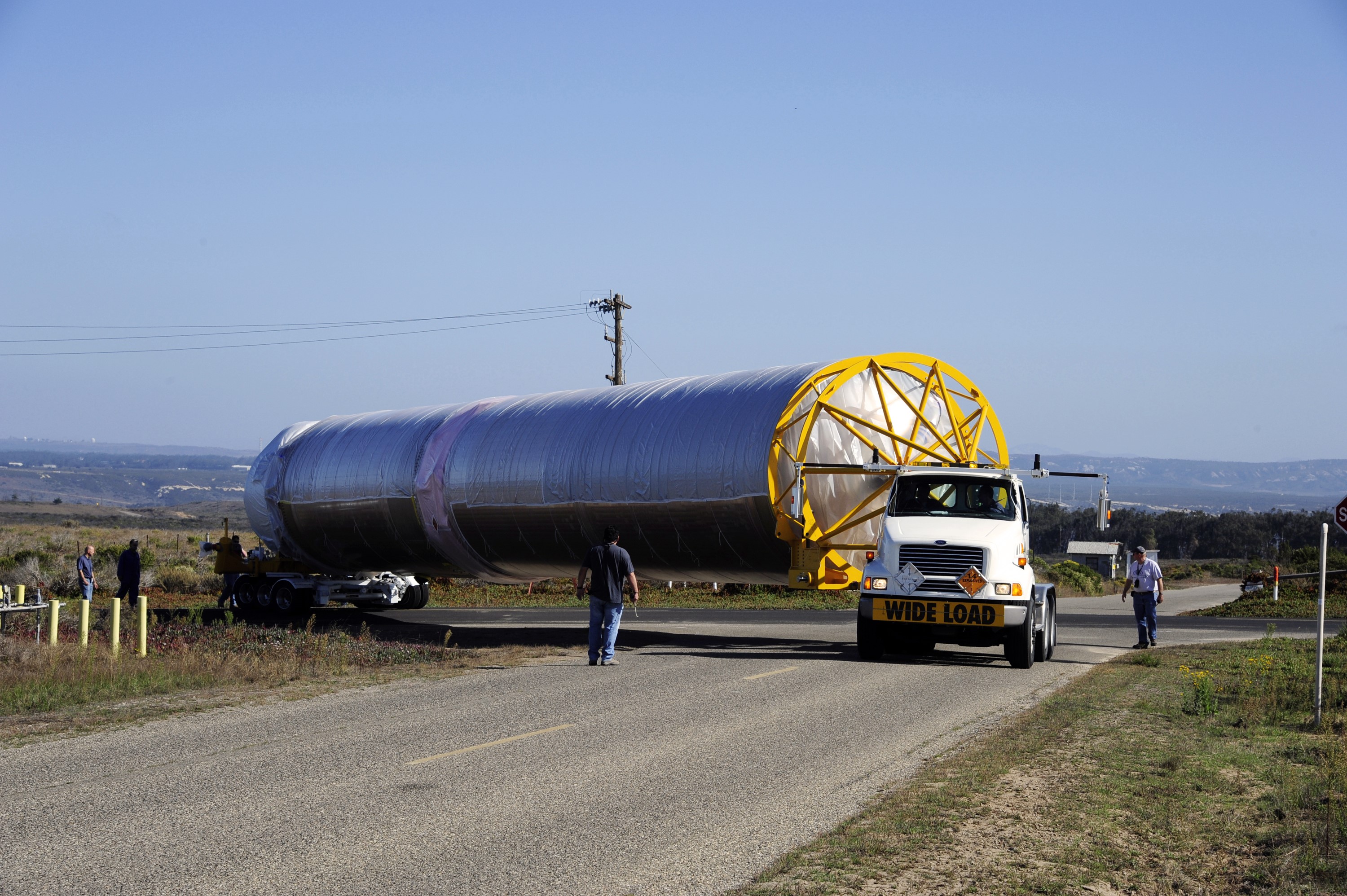 VANDENBERG AFB, Calif. – A truck moves the first stage booster of a United Launch Alliance Atlas V to Space Launch Complex-3E at Vandenberg Air Force Base, Calif. in preparation for the launch of the Landsat Data Continuity Mission. The Landsat Data Continuity Mission, or LDCM, is the future of Landsat satellites. It will continue to obtain valuable data and imagery to be used in agriculture, education, business, science, and government. The Landsat Program provides repetitive acquisition of high resolution multispectral data of the Earth's surface on a global basis. The data from the Landsat spacecraft constitute the longest record of the Earth's continental surfaces as seen from space. It is a record unmatched in quality, detail, coverage, and value. Launch is planned for Feb. 2013. Photo credit: NASA/Roy Allison