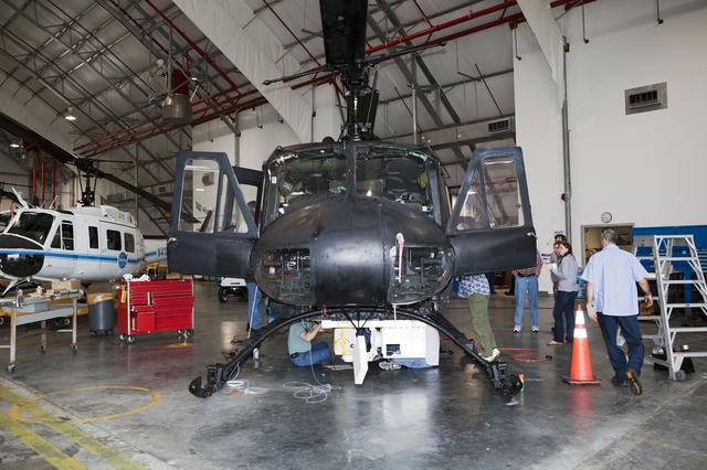 CAPE CANAVERAL, Fla. – Near the Shuttle Landing Facility at NASA's Kennedy Space Center in Florida, a space agency team installed and tested hazard avoidance instrumentation on a Huey helicopter. Led by the Johnson Space Center and supported by Jet Propulsion Laboratory and Langley Research Center, the Autonomous Landing Hazard Avoidance Technology, or ALHAT, laser system provides a planetary lander the ability to precisely land safely on a surface while detecting any dangerous obstacles such as rocks, holes and slopes. Just north of Kennedy's Shuttle Landing Facility runway, a rock- and crater-filled planetary scape has been built so engineers can test the ability to negotiate away from risks. Photo credit: NASA/Dmitri Gerondidakis